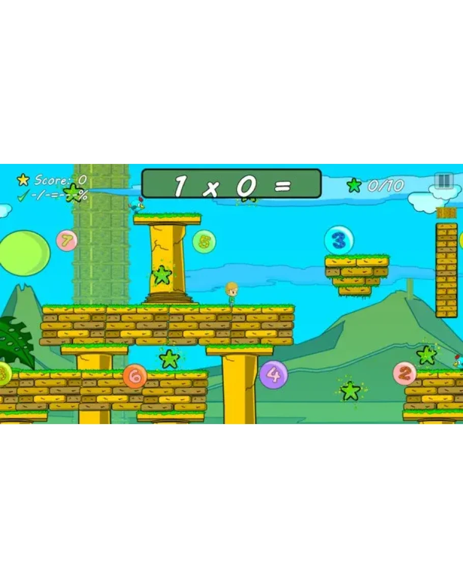 Math Tower is a game of addition, subtraction, multiplication, and division for which you must run, jump and catch the correct answers in balls, bubbles, frogs and birds.