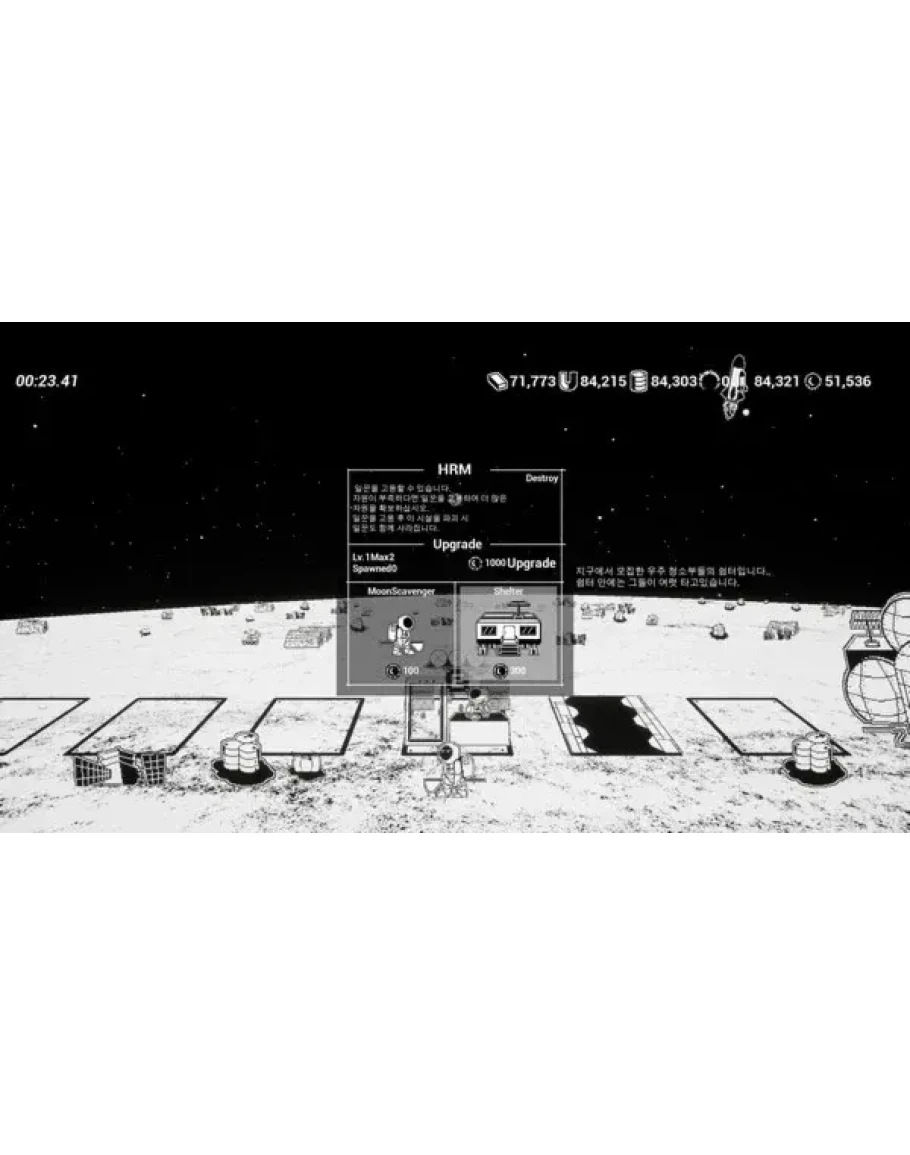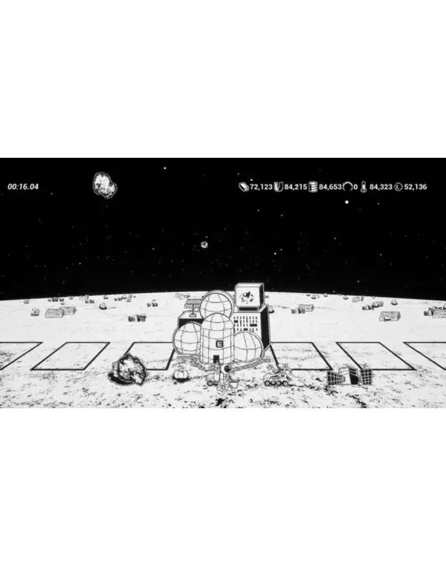 Avoid meteorites on the moon, collect resources and build buildings to survive longer and set records.