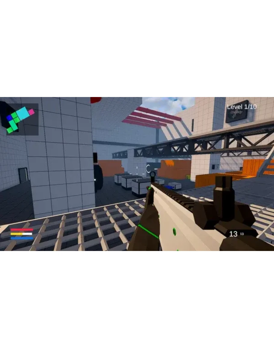 Neo Shock is an FPS roguelike. You play as a cybernetic character with various tools, shoot, stealth attacks, hack, or just throw a box in your enemies' heads.