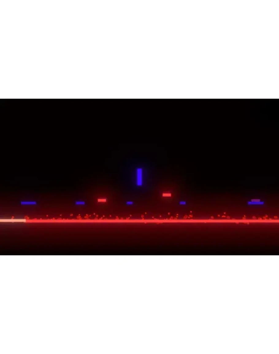 In Neon Parkour, where you control a blue cube, make challenging tracks, overcome obstacles, solve small puzzles, don't touch the red cubes and get your cube near your partner!