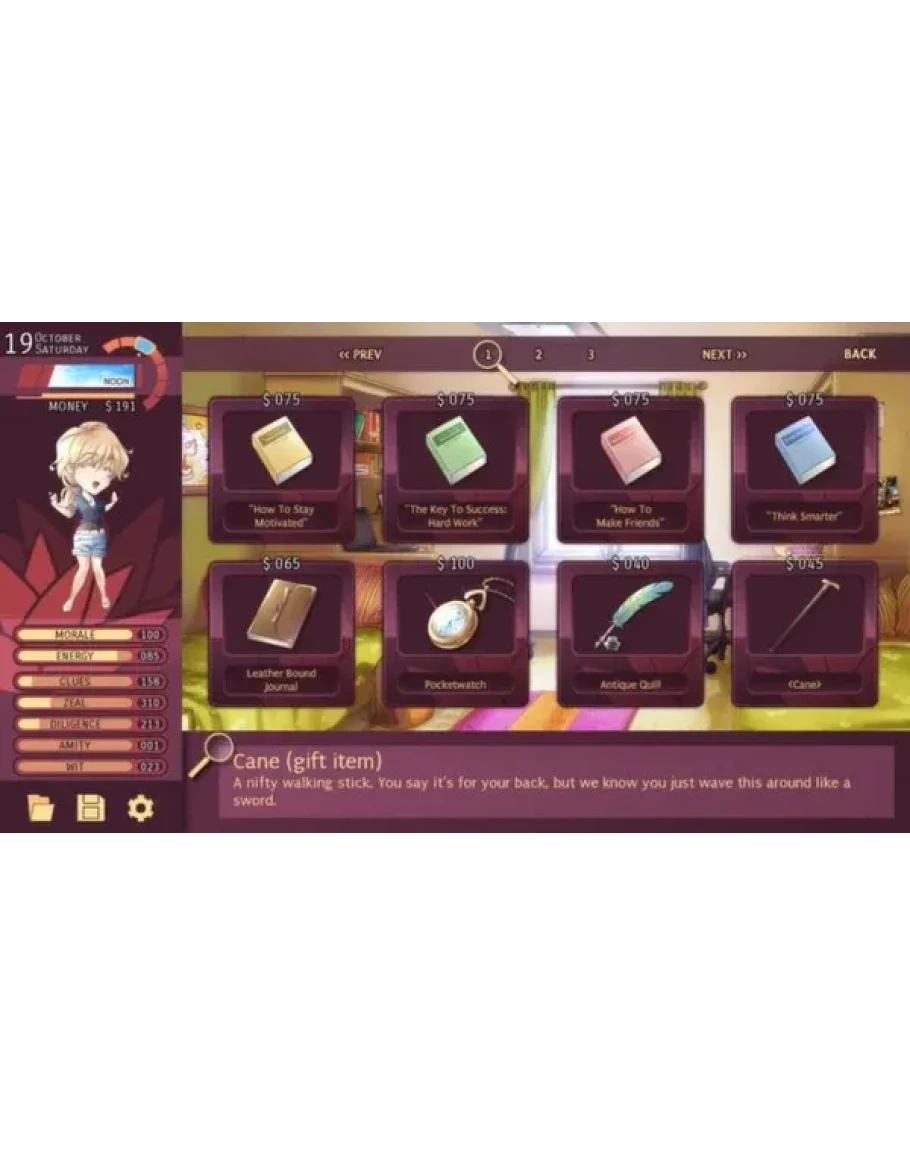 Николь - это симулятор свиданий, который вращается вокруг вашей повседневной жизни в качестве студента колледжа. Вы можете брать подработки, чтобы заработать деньги, исследовать различные места, заниматься рекреационными и дополнительными приложениями, и встретить интересных персонажей, таких как Даррен, Курт, Джефф и Тед. Вы даже можете встретить виновника!