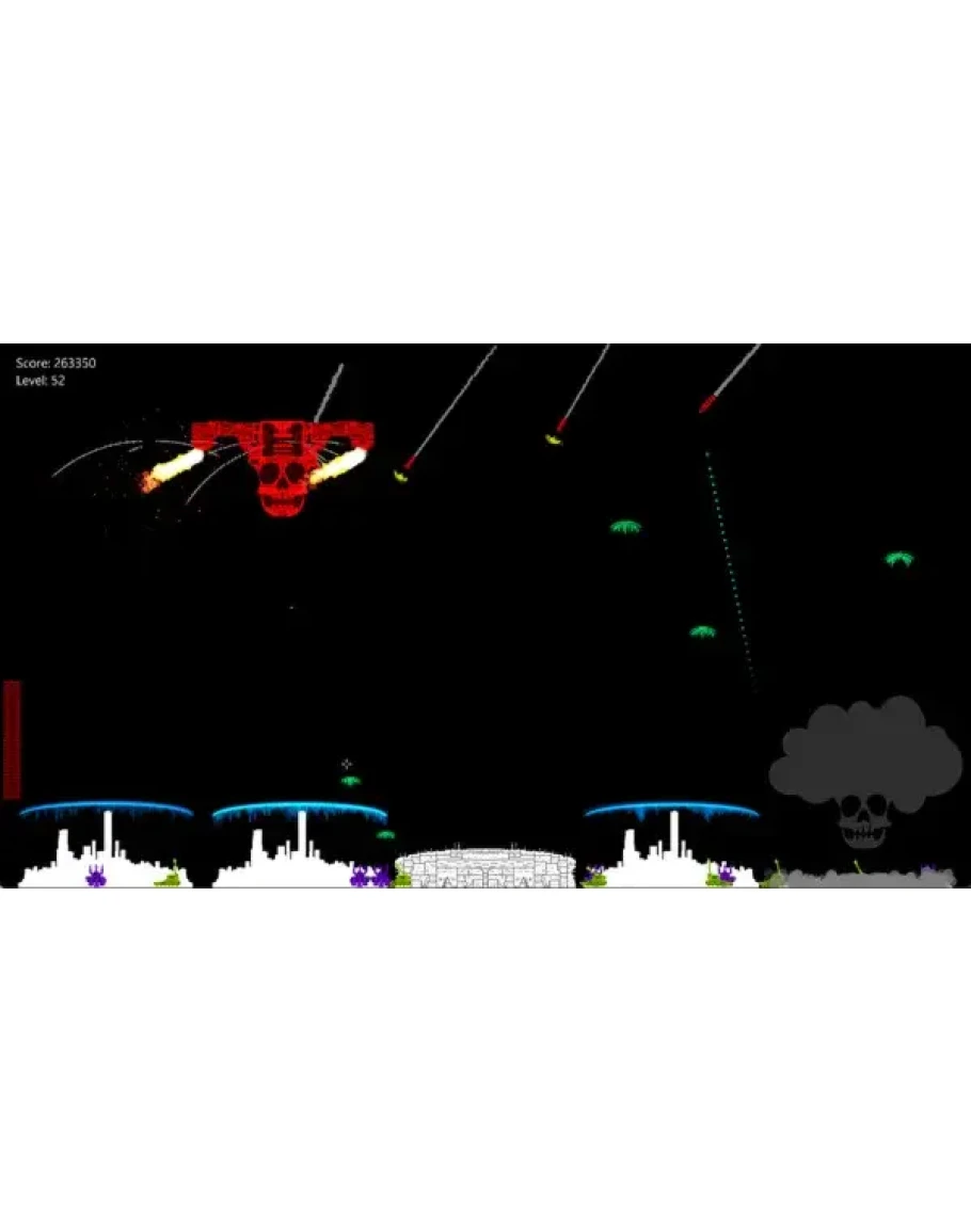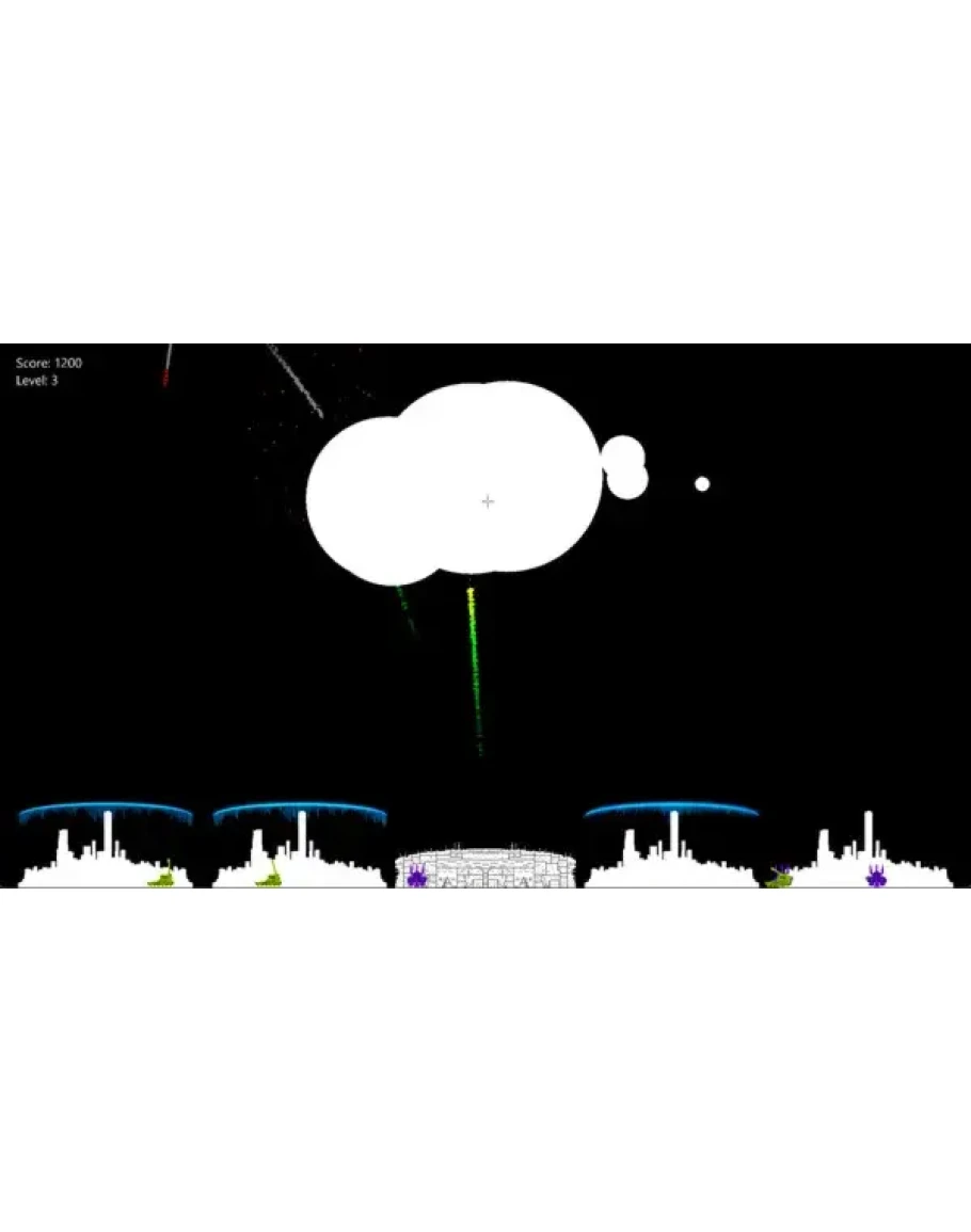 The setting: World War 3 has started. The Enemy is attempting to destroy the player's cities at all costs. The player is in charge of Central Command, where they may launch Interceptor Missiles to destroy incoming nukes.