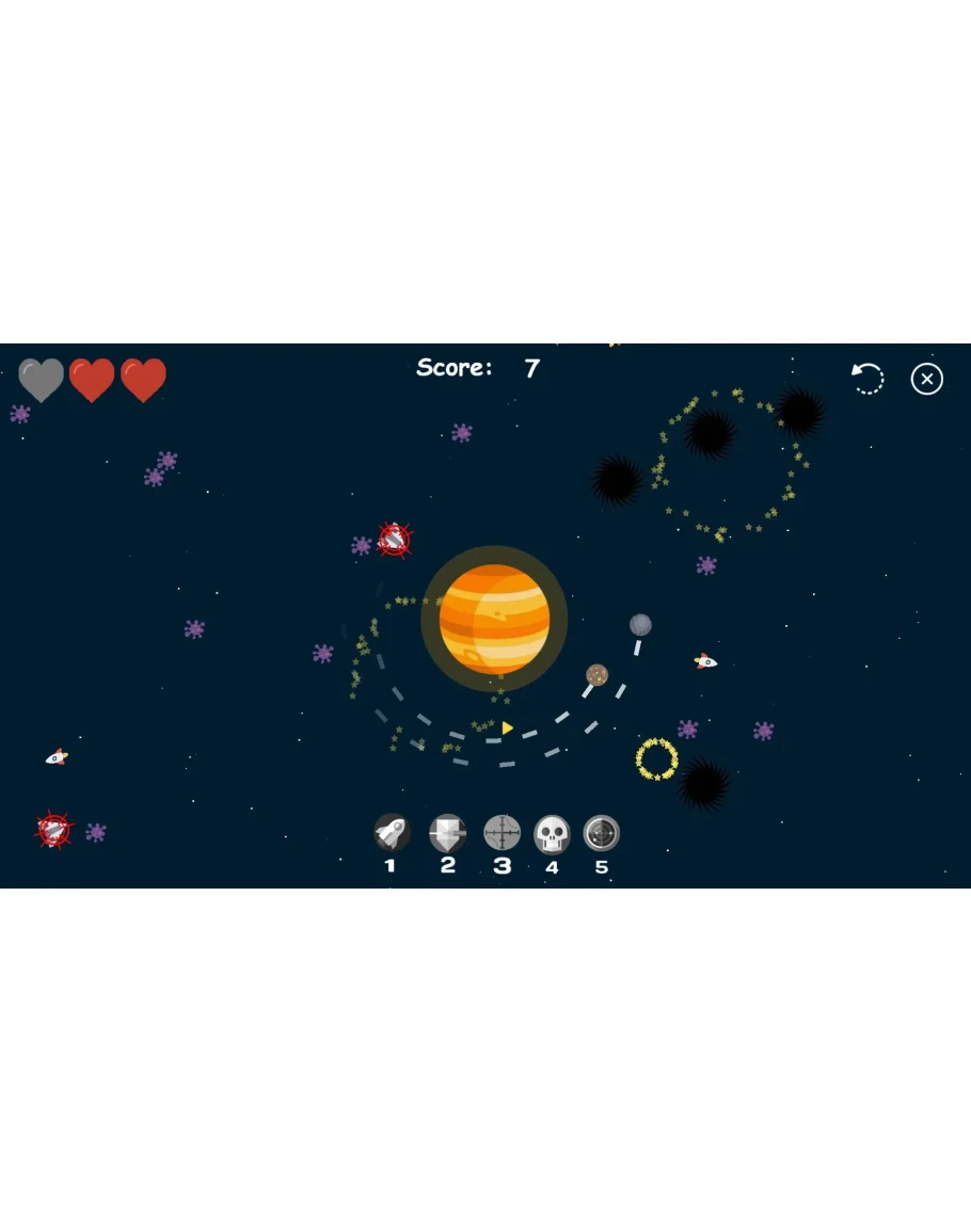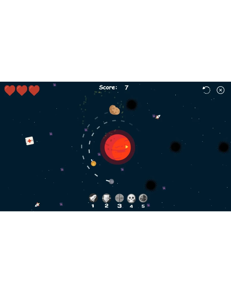 The game is a simple but exciting arcade. You have to control the satellite, one of the few planets in the solar system. Destroying enemies you get points, thereby to set new records!