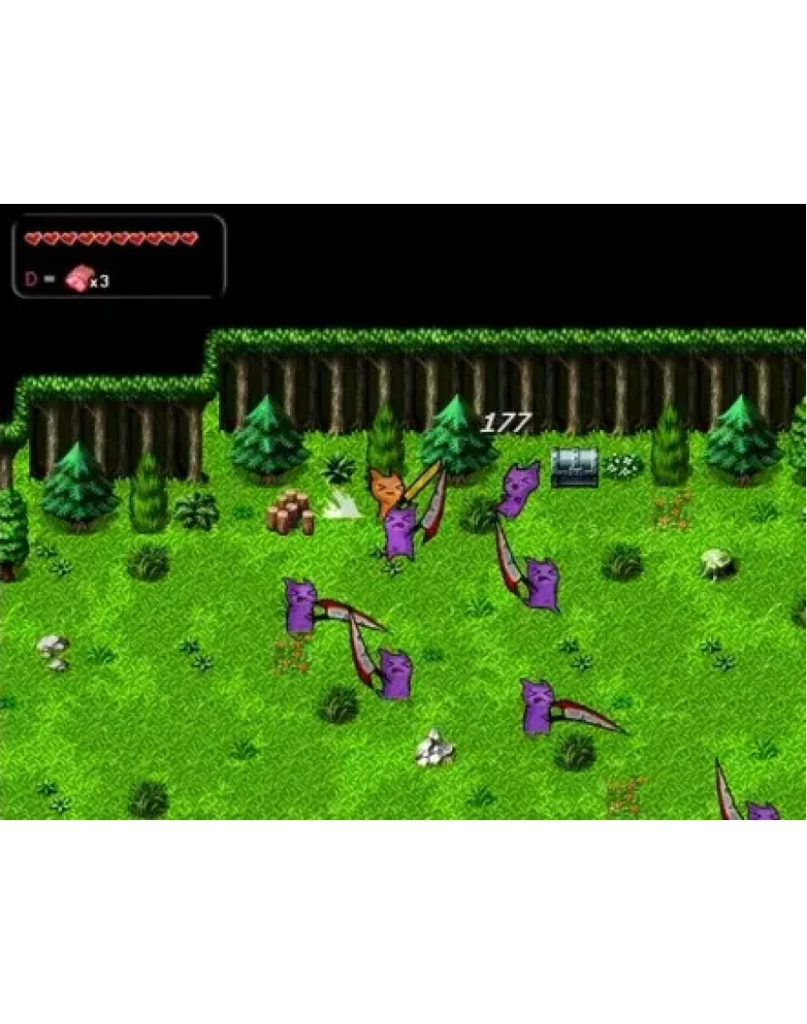 This is Ourhero. He mows through baddies with his ginormous swords and heals himself by eating meat, par for the course.