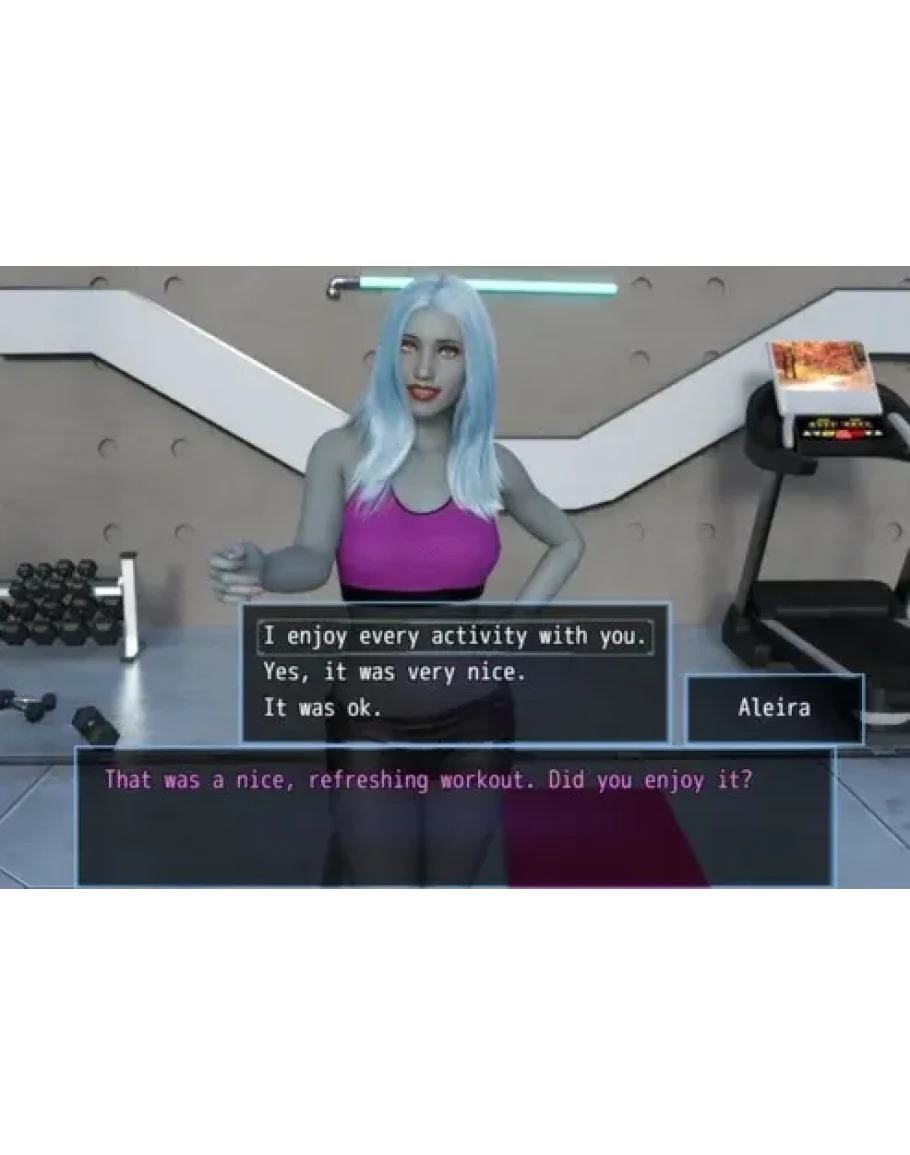 Sexual content: Non-explicit romance scenes shown as rendered images involving 3D character models.