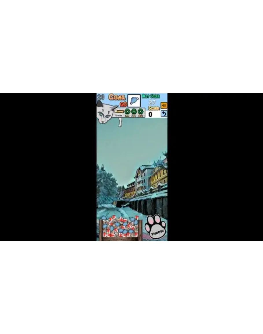 Mimi the cat's paw sweeps the screen from left to right and back again. Click on the paw in the bottom right corner to drop the waste that appears in the frame at the top of the screen into the trash can.