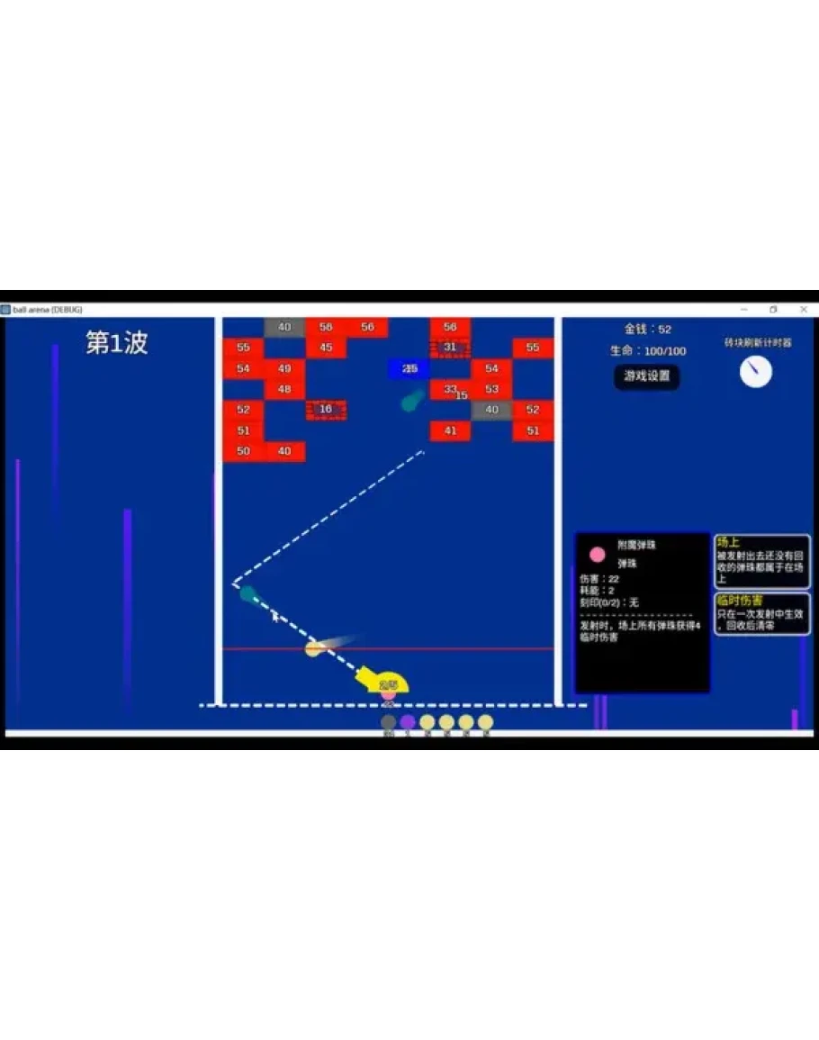 Pinball Arena is a game that shoots marbles to destroy bricks, using the cooperation between marbles to destroy falling bricks and defeat powerful bosses. Unlike the traditional brick-hitting game, in this game you need not only aiming, but also deck building, which you can think of as a card meat pigeon game, except that the cards become marbles. You can build small decks that strengthen one marbles as the main output, or you can build large decks that enhance the strength of all marbles, depending on your choice in one game.