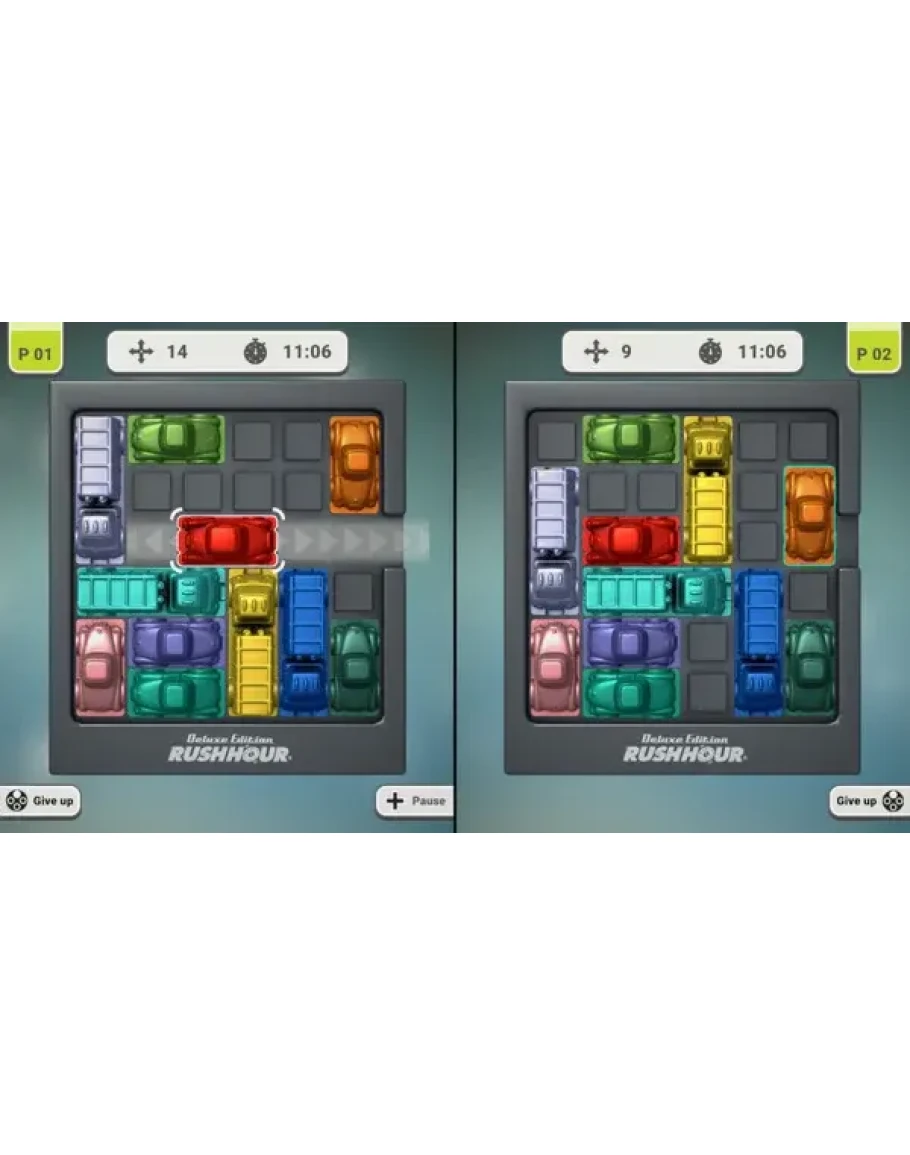 Not only can you play Rush Hour® Deluxe alone, but go head-to-head with other players to measure your brainpower: who will solve the challenges in the quickest time and with the fewest moves?