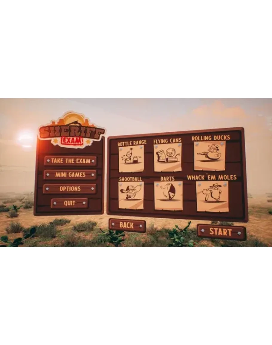 Pass the Sheriff Exam and enjoy a fantastic Wild West fps game in VR. Shoot your way through the selection process and become the next Sheriff! This is a challenging arcade game for testing shooting skills and your brain with different puzzles and memory games. Be precise and play smart!
