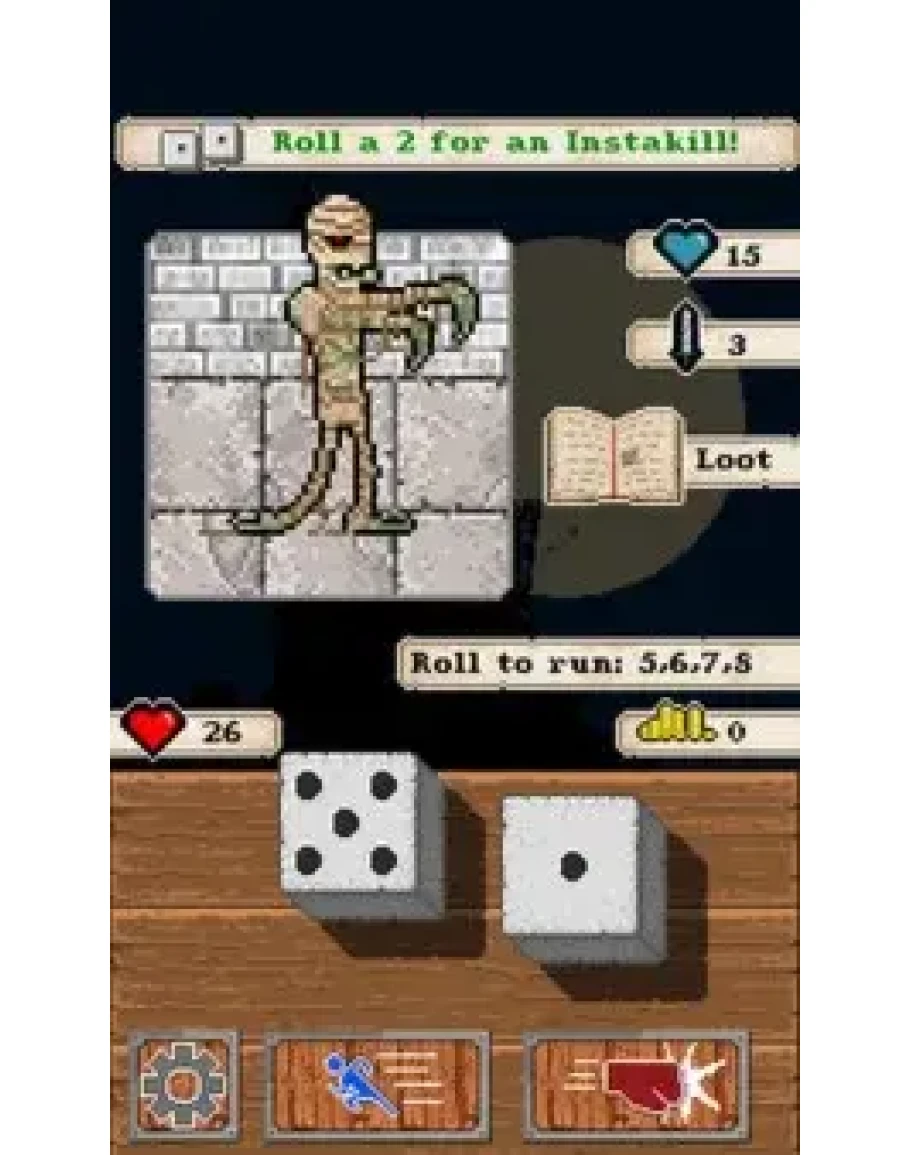 Войдите в подземелье, заблудитесь и бросайте кости против монстров! Испытайте свои шансы против опасных монстров, таких как призраки, оборотни или даже сам монстр Франкенштейна!