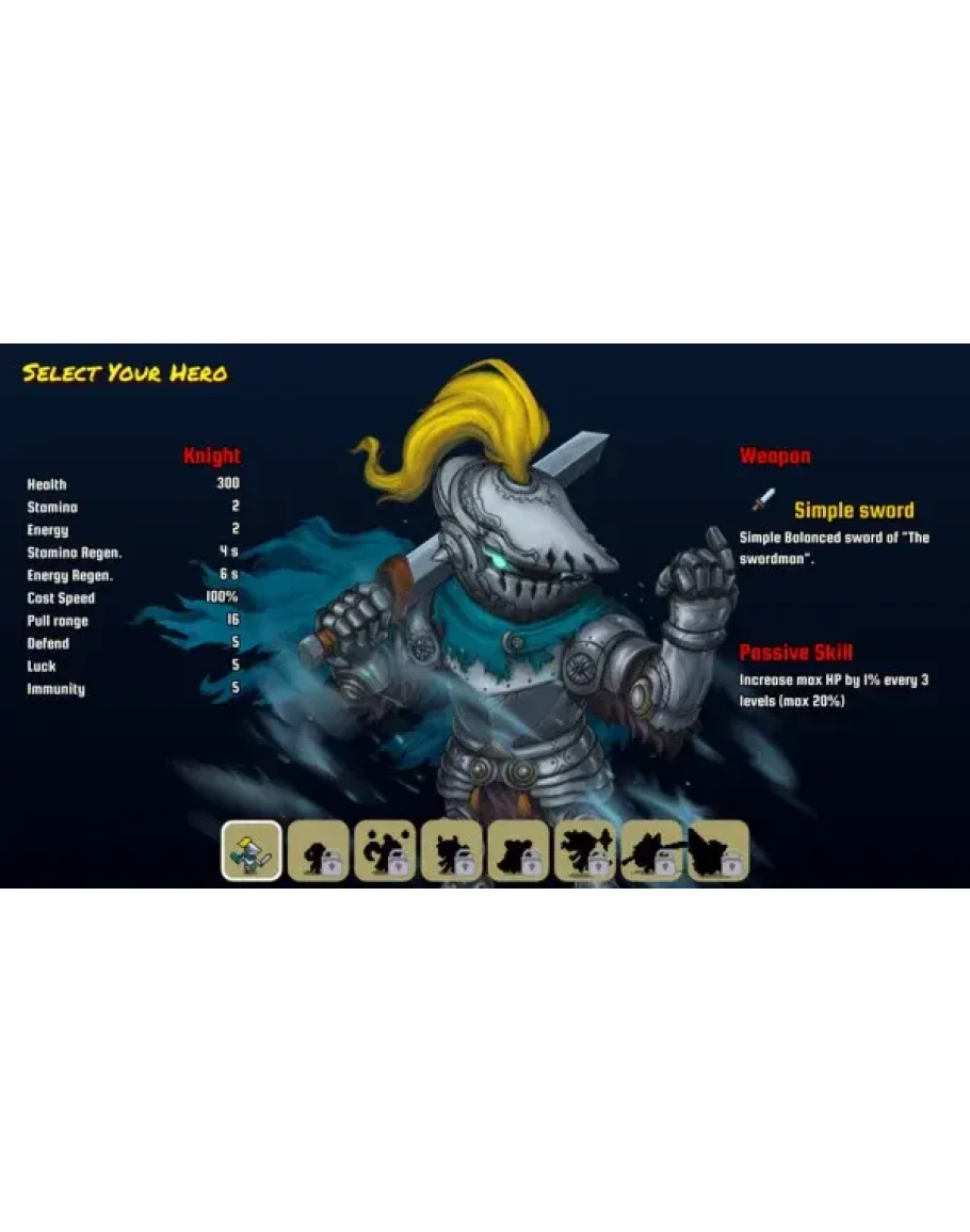 It's rogue-like action game, let's leveling up your hero, select weapons/skills and make some powerful builds.