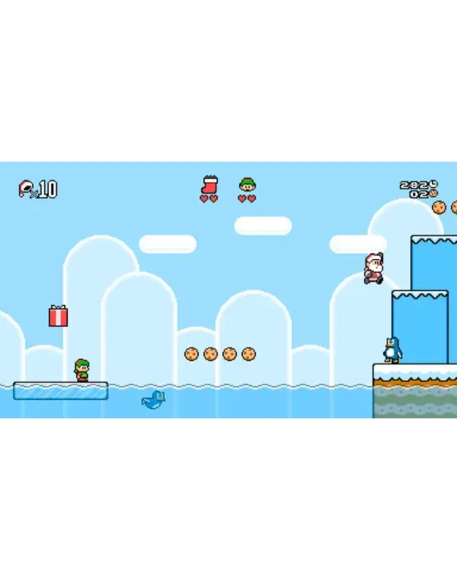 Christmas is just a few days away... and while Santa is out on a trial run in his sleigh, the evil South Pole Troll and his army of Penguins invade the North Pole! On the way back to his workshop, Santa is blasted out of the sky by one of his very own North Pole defense cannons. Now he must find his way back home, defeat the Troll, and save Christmas!