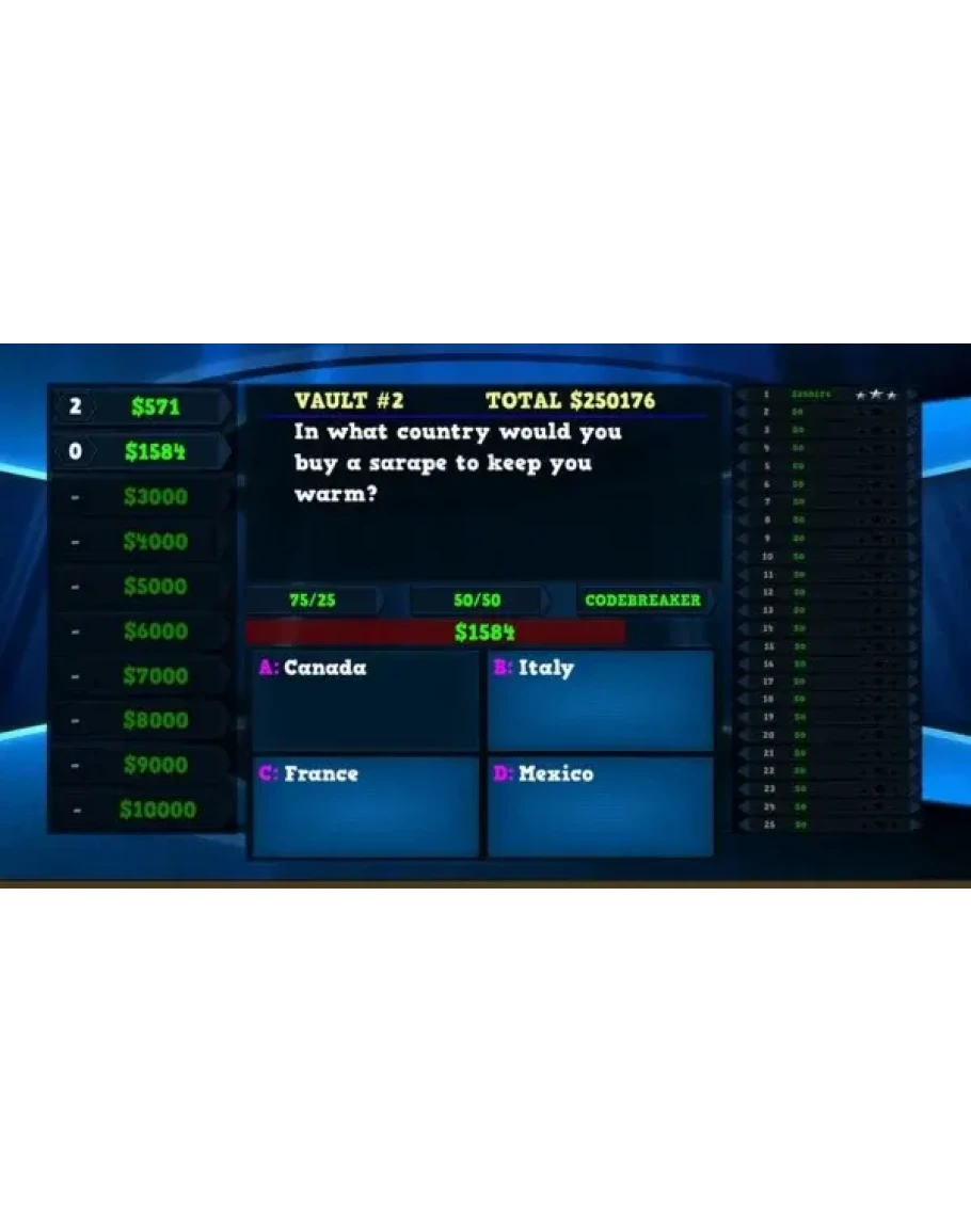 Welcome to the Trivia Vault contestant! Play as a contestant in a gameshow called Trivia Vault Fashion Trivia and bring your thinking hat. Answer fashion trivia questions as quickly as you can, the faster you answer the higher the cash value