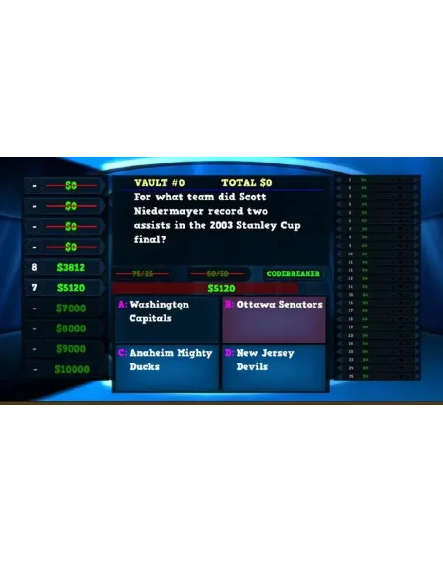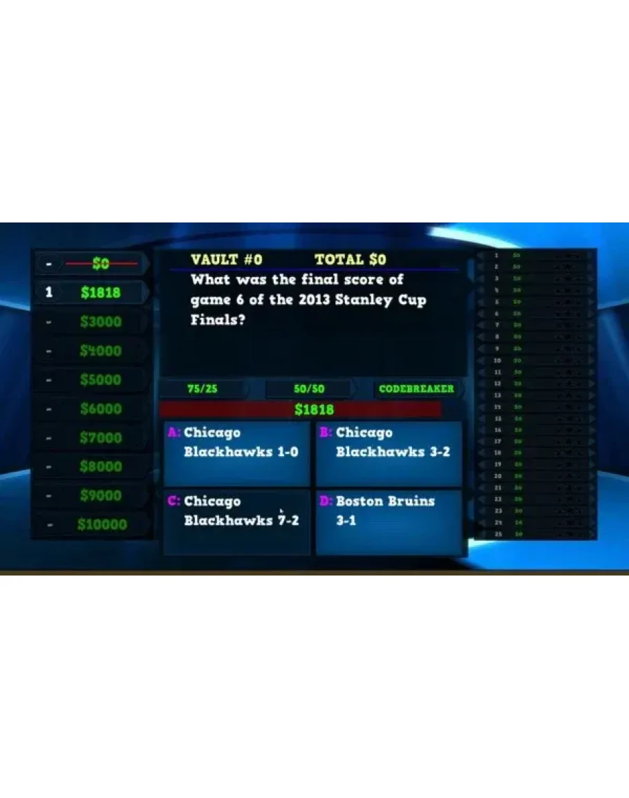 Welcome to the Trivia Vault contestant! Play as a contestant in a gameshow called Trivia Vault Hockey Trivia and bring your thinking hat. Answer hockey trivia questions as quickly as you can, the faster you answer the higher the cash value.