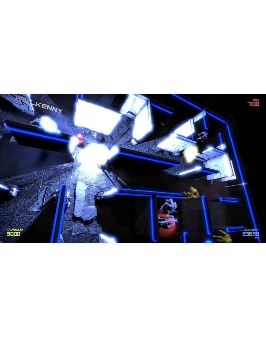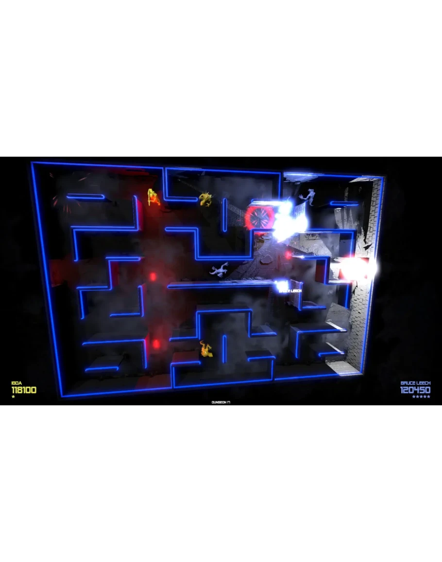 Collect power-ups within the dungeon. The blue ones make you run faster, the orange ones make you shoot faster