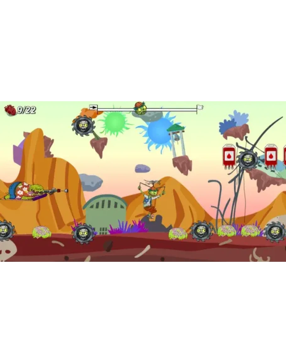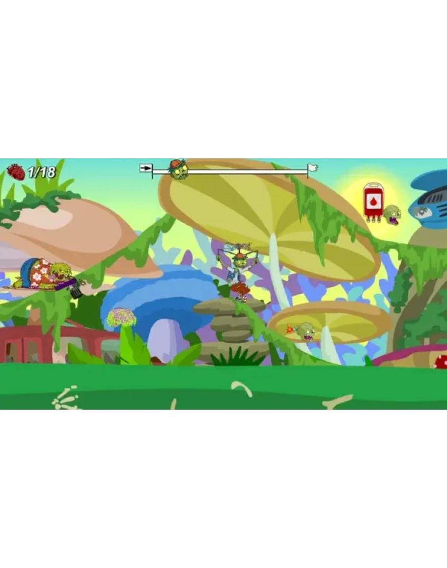 Почувствуй себя изголодавшимся зомби, летящем на мёртвом птеродактиле! Ешь мозги, кости, печень и сердца так много, сколько только сможешь. Расслабиться не получится, так как жирный мертвец на ковре-самолёте и био-пушками будет преследовать тебя до самой смерти. Зато ты побываешь в царстве грибов, городе будущего и даже на других планетах.