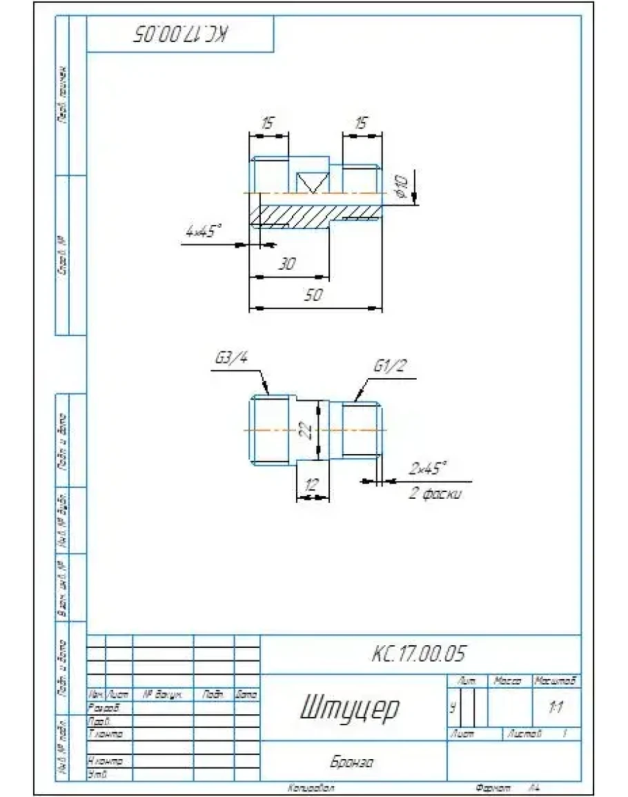 КС.17.00.05 штуцер - чертеж детали
