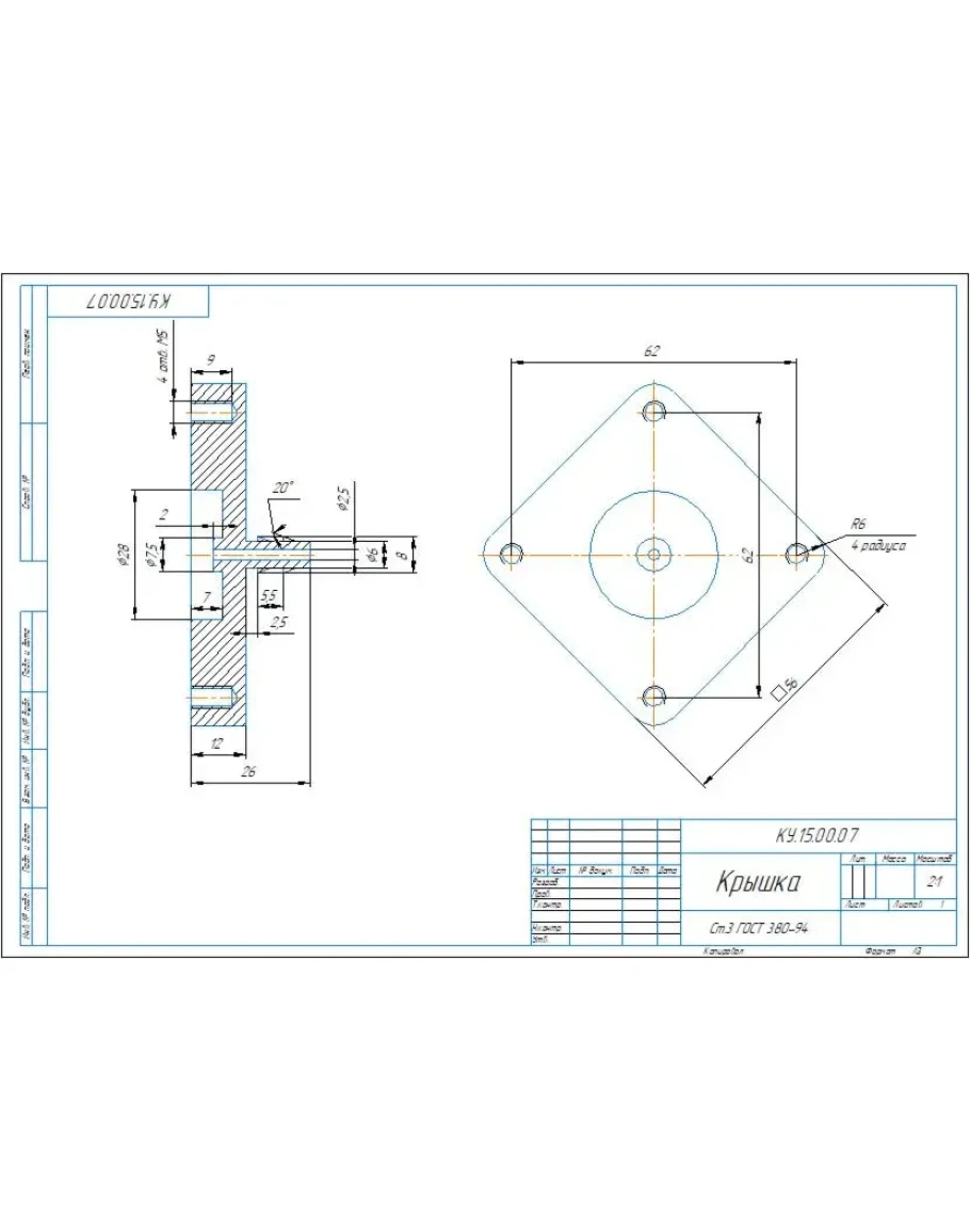 КУ.15.00.07 крышка - чертеж детали