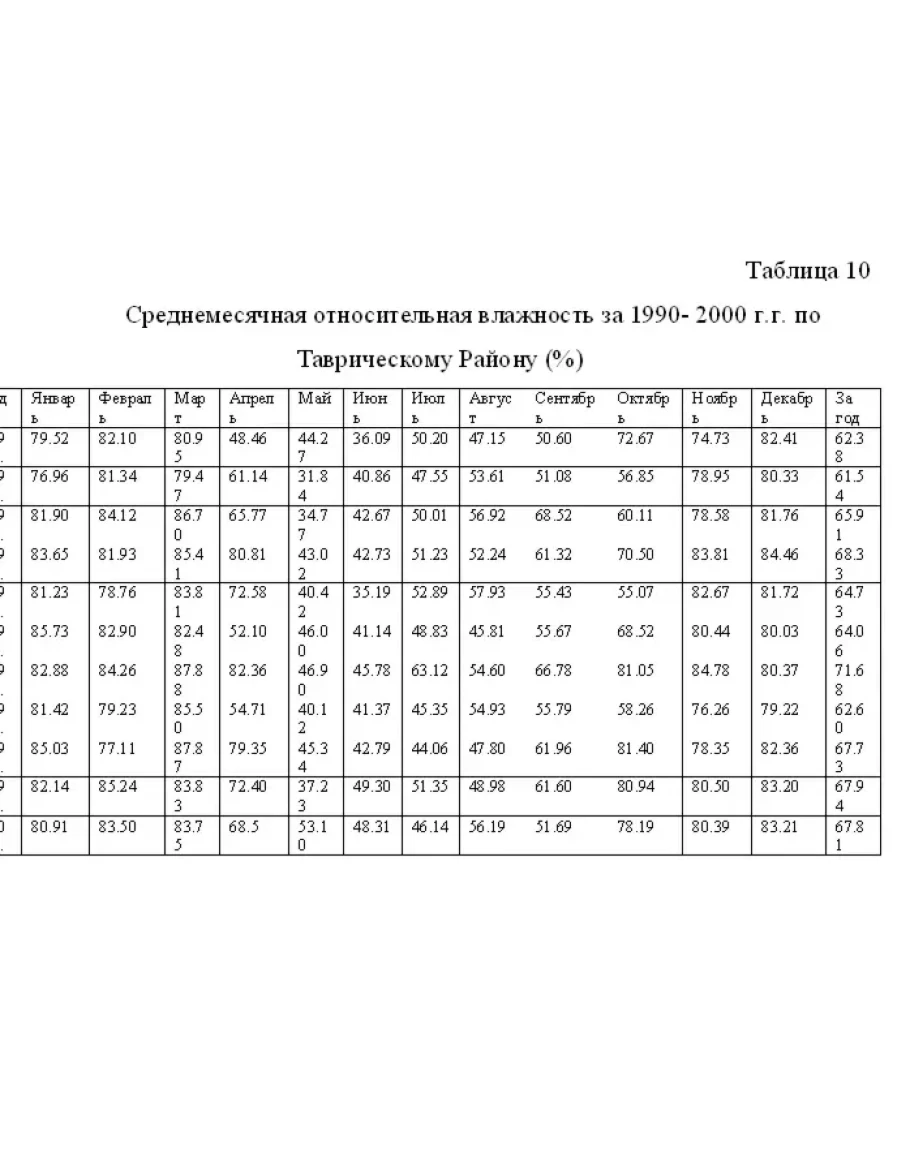 1.1.4. Показатели влажности по Таврическому Району Омской области за 1990-2000г.г. 13