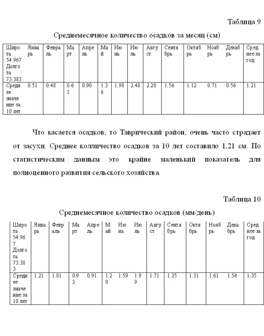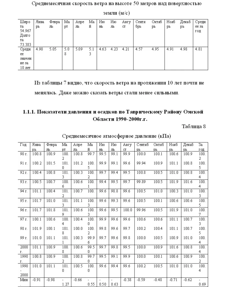 1.1.3. Показатели давления и осадков по Таврическому Району Омской Области за 1990-2000г.г. 11