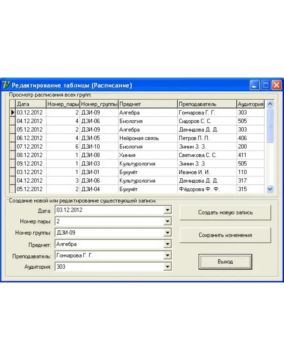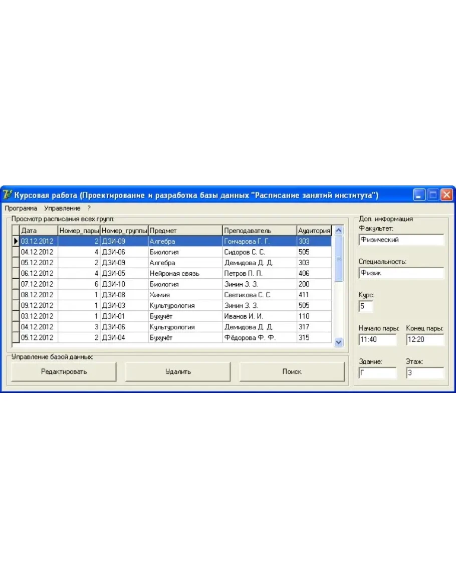2. Написать и отладить приложение, позволяющее просматривать базу данных, осуществлять навигацию в таблицах, производить поиск записей по заданным значениям полей, вставлять, удалять и изменять записи базы данных