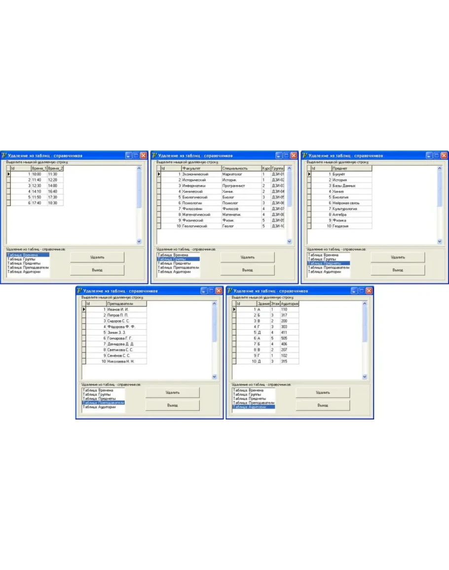 1. Создать базу данных "Расписание занятий института", содержащую непротиворечивое расписание для студенческих групп и для преподавателей