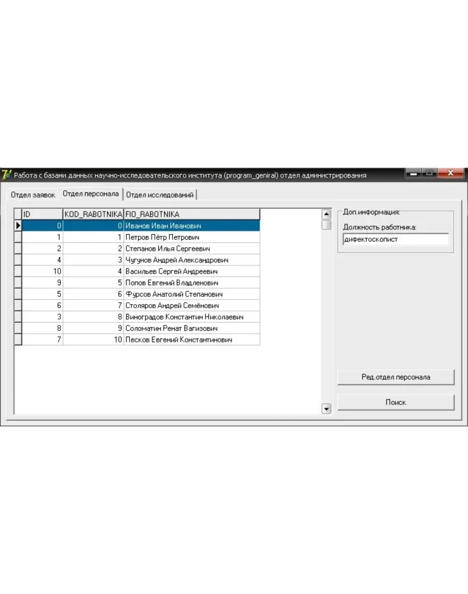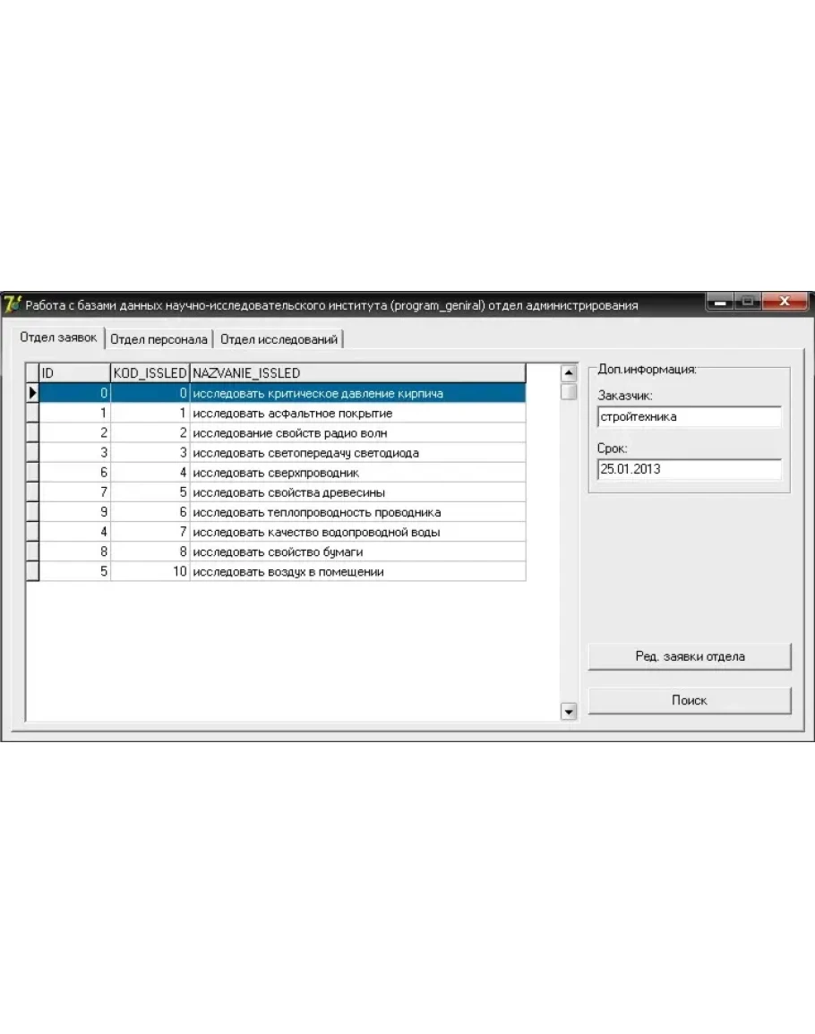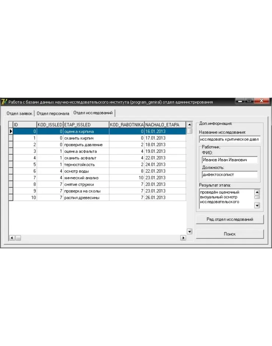 Вариант задания: 8. КИС «Научно-исследовательский институт»;