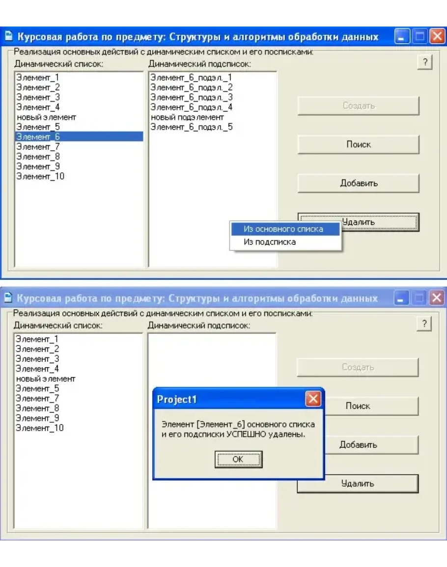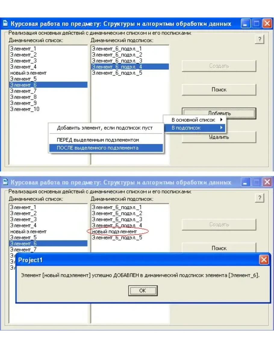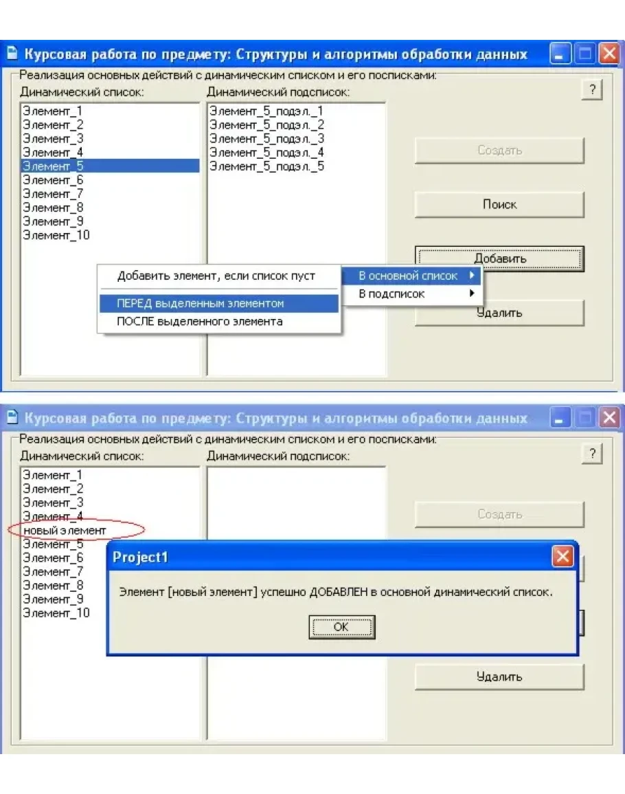 -поддержка комбинированной структуры данных: каждый элемент основной