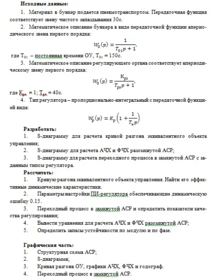 Тема: "Расчет АСР уровня сыпучего материала в загрузочном бункере литьевой машины"