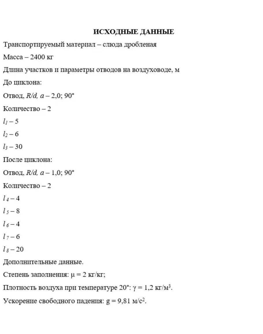Тема: "Расчет и проектирование систем пневмотранспорта полимерных материалов"