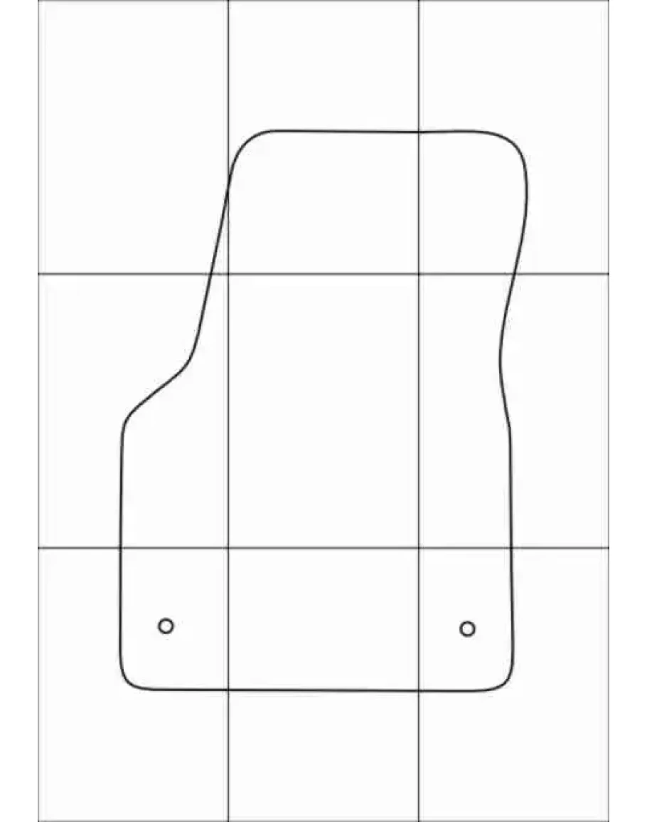 Лекала для пошива автомобильных ковриков: Реальные размеры. Комплект включает лекала полного размера для печати на широкоформатном принтере и лекала, разделенные на листы для печати на листах формата А4. На каждом листе имеются отметки для выравнивания при склейке. В комплект также входят изображения в формате PNG, которые показывают, как правильно склеивать части.