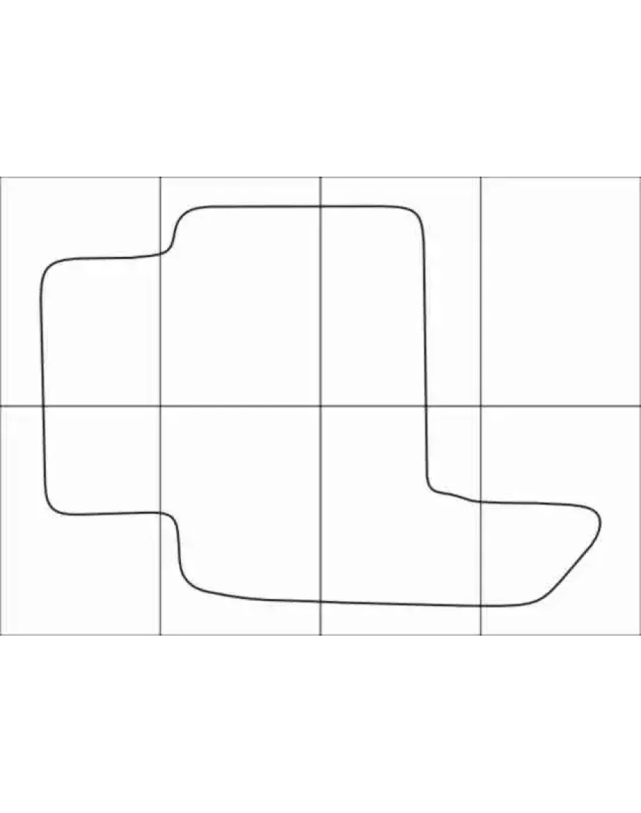 Лекала для пошива автомобильных ковриков: Реальные размеры. Комплект включает лекала полного размера для печати на широкоформатном принтере и лекала, разделенные на листы для печати на листах формата А4 (формат PDF). На каждом листе имеются отметки для выравнивания при склейке. В комплект также входят изображения в формате PNG, которые показывают, как правильно склеивать части.