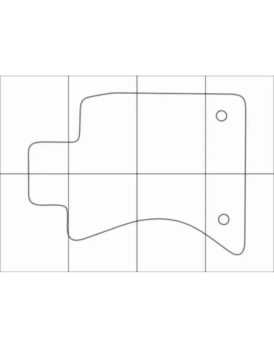 Лекала для пошива автомобильных ковриков: Реальные размеры. Комплект включает лекала полного размера для печати на широкоформатном принтере и лекала, разделенные на листы для печати на листах формата А4 (формат PDF). На каждом листе имеются отметки для выравнивания при склейке. В комплект также входят изображения в формате PNG, которые показывают, как правильно склеивать части.