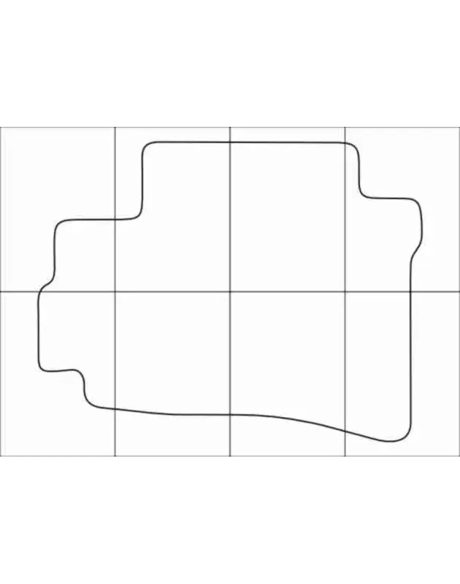 Лекала для пошива автомобильных ковриков: Реальные размеры. Комплект включает лекала полного размера для печати на широкоформатном принтере и лекала, разделенные на листы для печати на листах формата А4 (формат PDF). На каждом листе имеются отметки для выравнивания при склейке. В комплект также входят изображения в формате PNG, которые показывают, как правильно склеивать части.