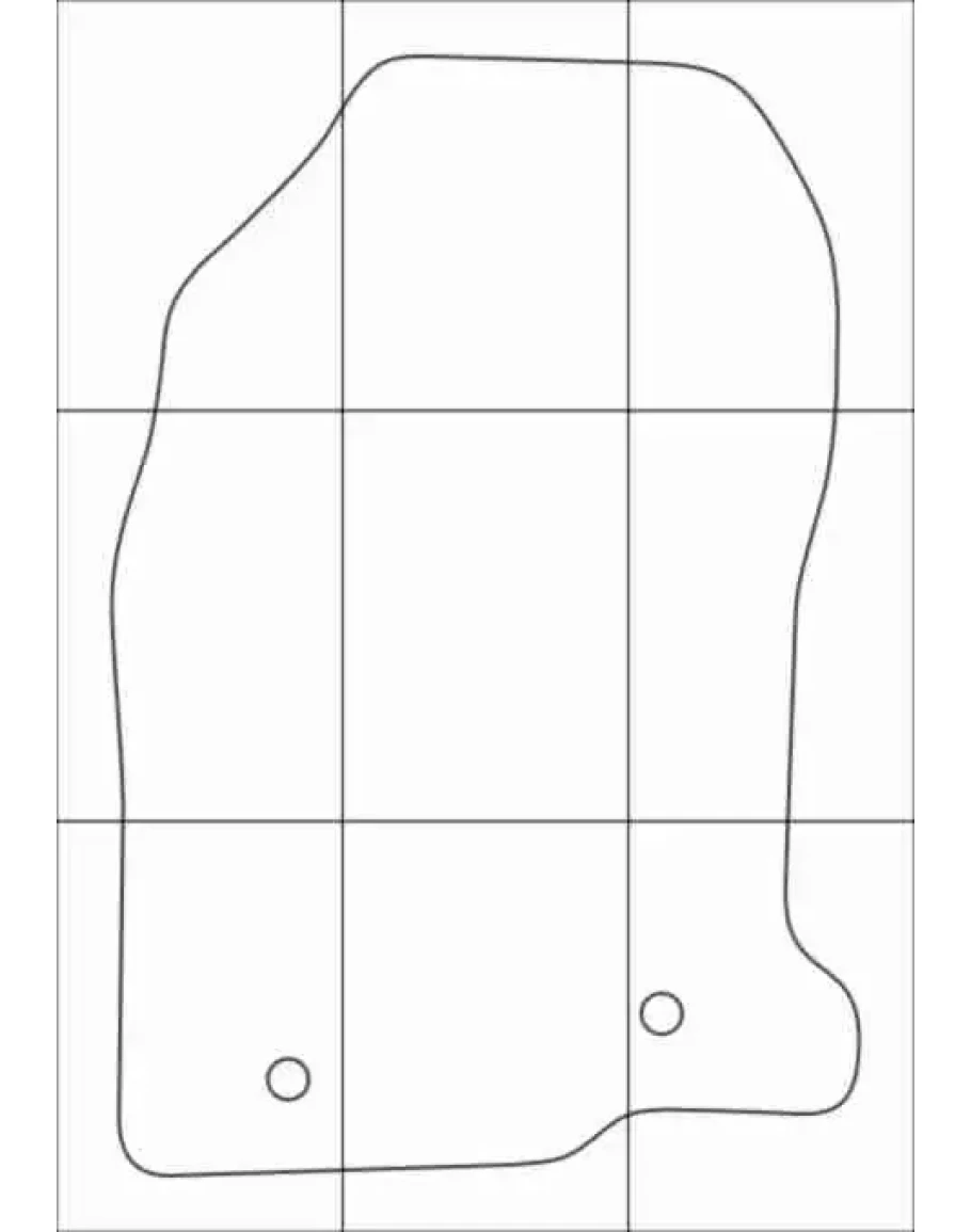 Лекала для пошива автомобильных ковриков: Реальные размеры. Комплект включает лекала полного размера для печати на широкоформатном принтере и лекала, разделенные на листы для печати на листах формата А4 (формат PDF). На каждом листе имеются отметки для выравнивания при склейке. В комплект также входят изображения в формате PNG, которые показывают, как правильно склеивать части.