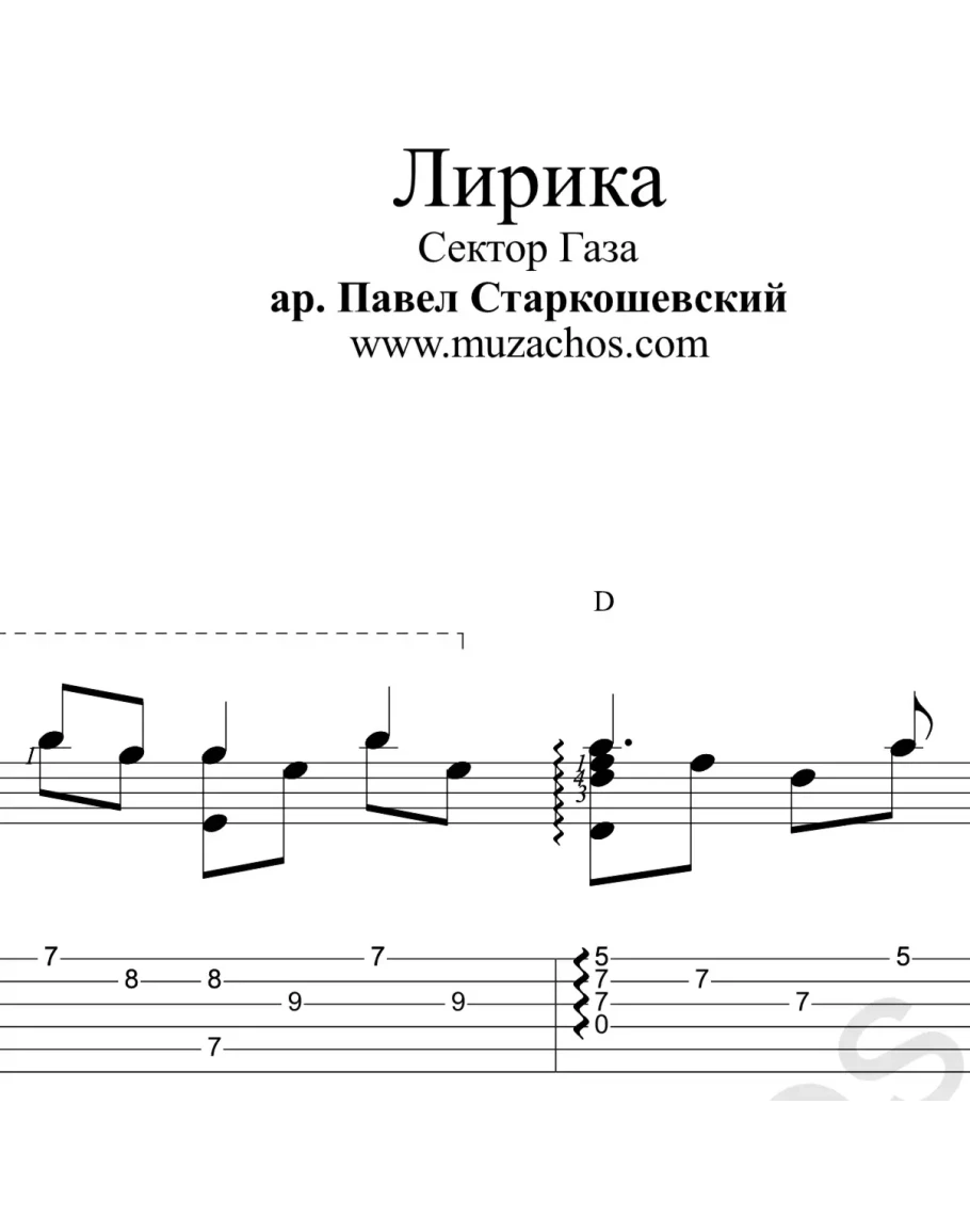 Лирика (Сектор Газа). Ноты для гитары и табы
