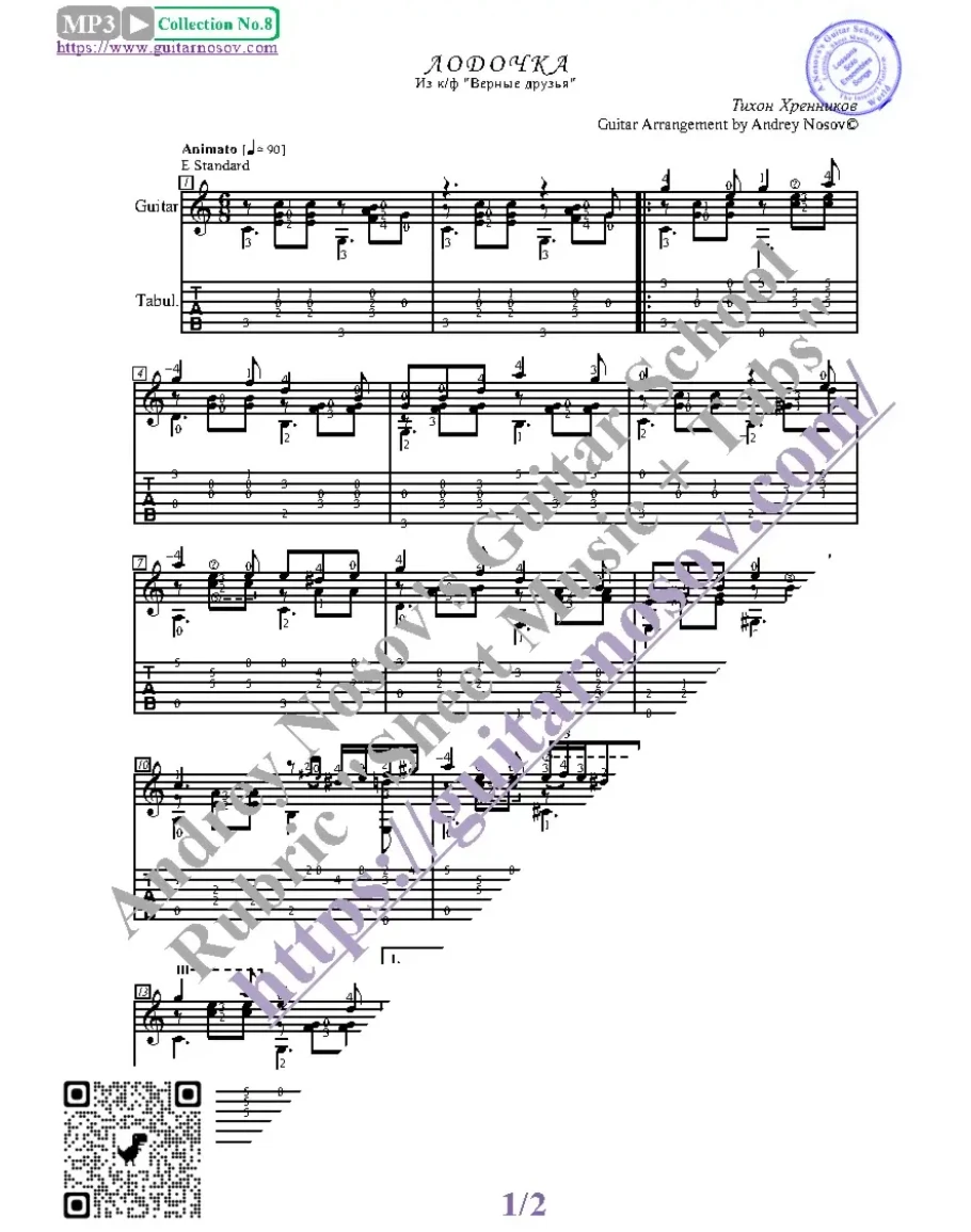 Товар состоит из двух частей (pdf / png*): 1 – Ноты с табулатурой; 2 – Ноты без табулатуры. Прилагается ссылка на скачивание mp3.