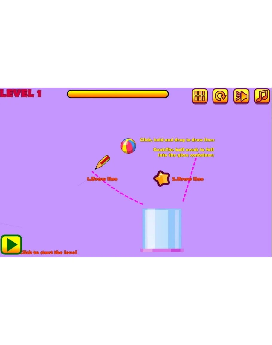 Нарисуйте на экране линии, чтобы направить мячик в чашку и завершить уровень
