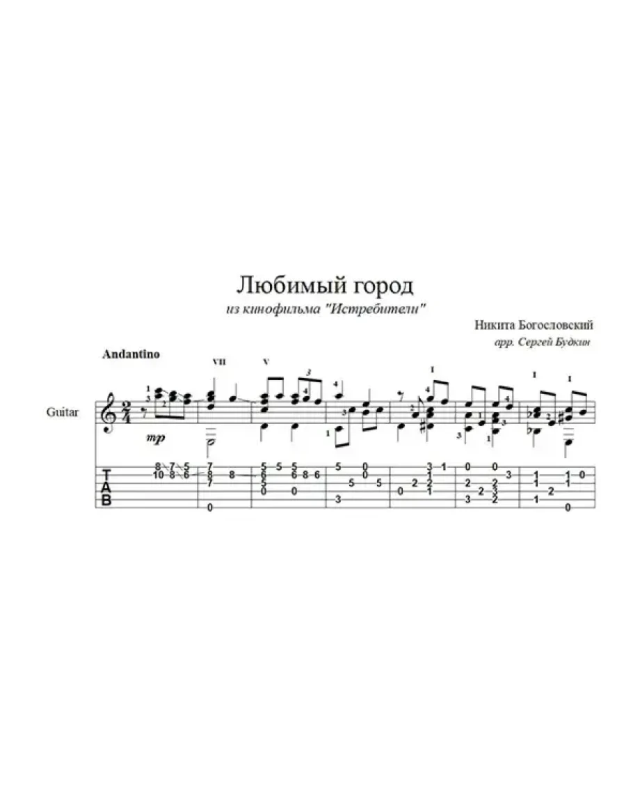 Аранжировка для гитары соло песни Никиты Богословского из кинофильма "Истребители".