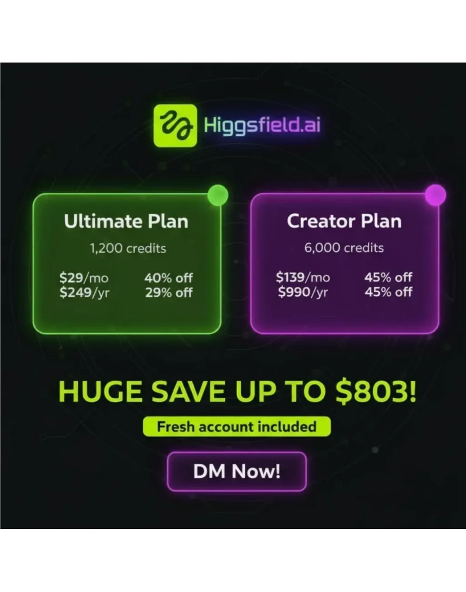 🚀 Доступ к HIGGSFIELD AI SUBSCRIPTION – СОЗДАТЕЛЬ / МАКСИМАЛЬНЫЙ