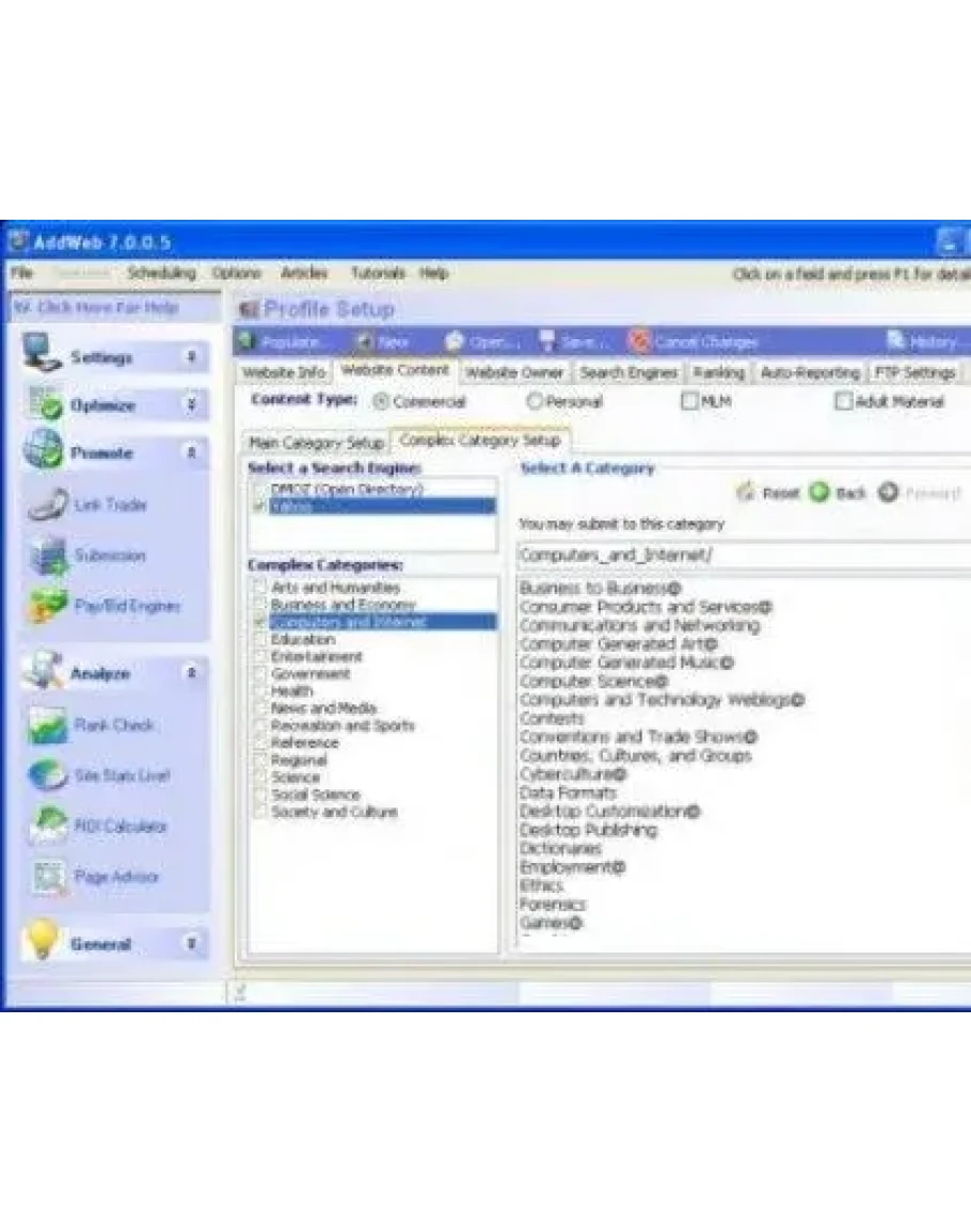 Addweb Website Promoter Pro v8.0.3.8 - это программа для каждого, у кого есть сайт. Является одной из самых популярных программ для регистрации веб-сайта в поисковых системах и каталогах. Создав всего один профиль, AddWeb автоматом добавит Вас в более чем 700000 поисковиков и каталогов. Также, автоматически проанализирует ваши web-страницы и подскажет Вам, что Вы должны сделать, чтобы получить верхние позиции. Предоставит возможность проверки положения в более чем в 100 главных поисковых серверов по заданным ключевым словам, содержит встроенный генератор дорвеев и многое другое.