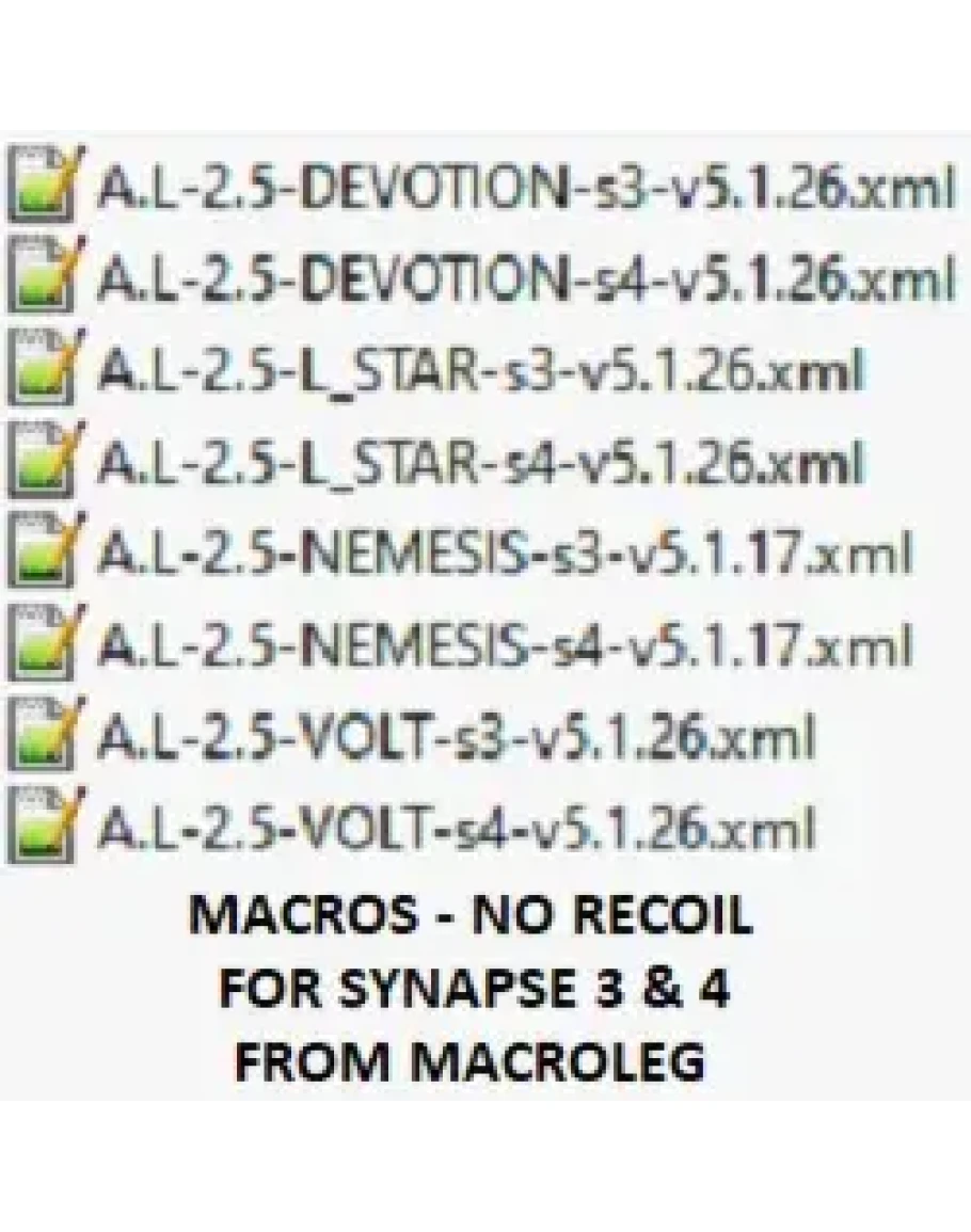 Макросы - No recoil для мышек Razer в игре Apex Legends у Возмездие, Вольт, Преданность, Л-стар убирают отдачу почти полностью. Ваша мышка должна поддерживаться программой - Synapse 3, или 4.