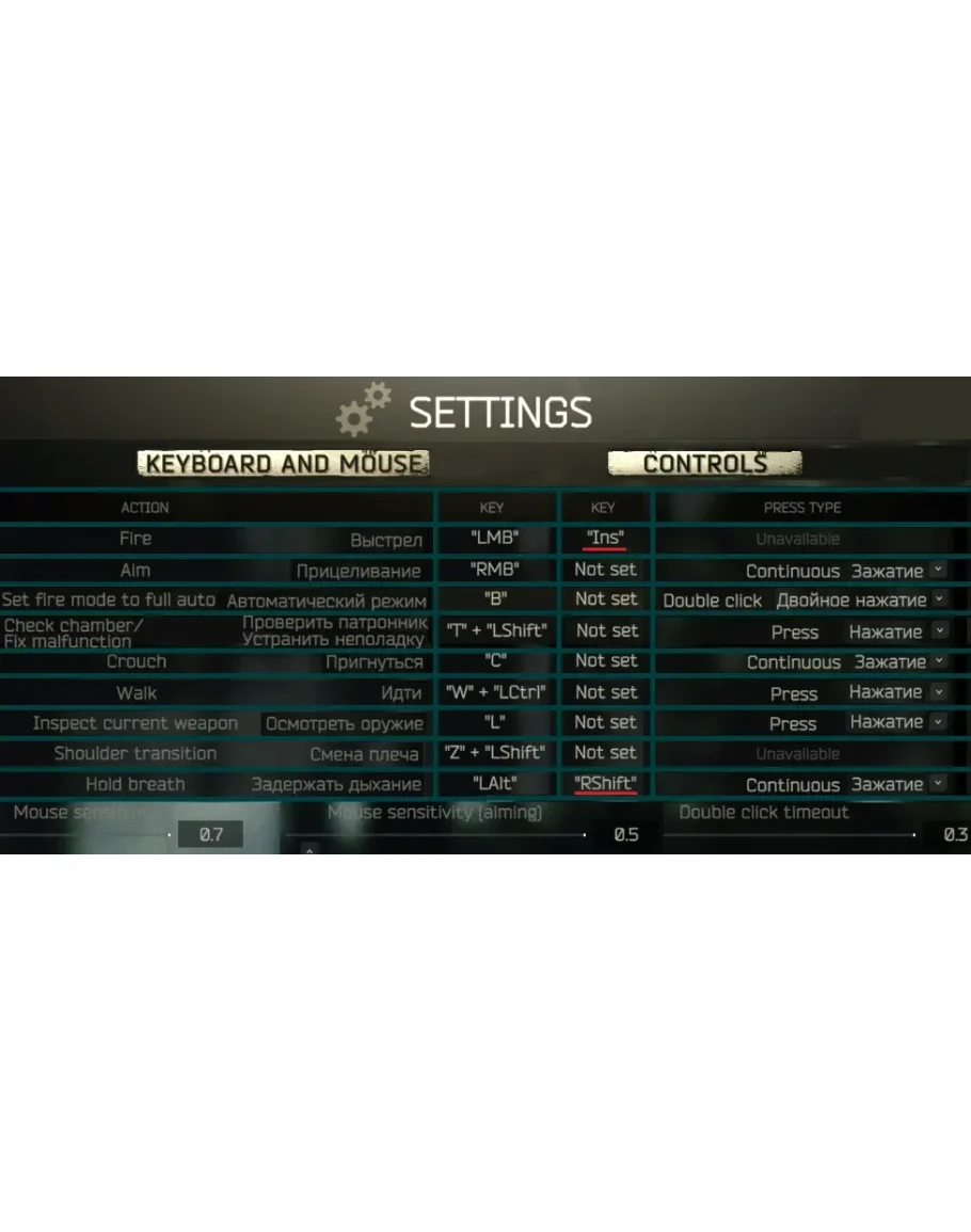 5-я кнопка мыши — 2-е нажатие: Режим уменьшения отдачи для полуавтоматического режима стрельбы.