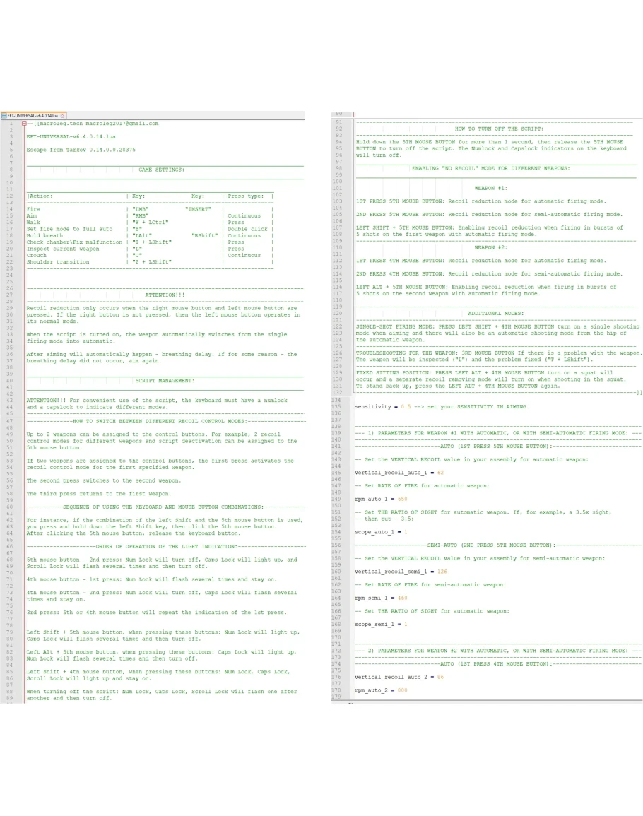 Универсальный скрипт – No Recoil для мышек Logitech в игре Побег из Таркова убирает вертикальную отдачу у оружия до 5-го выстрела, после 5-го выстрела отдачи нет. То есть повышает кучность и тем самым увеличивают дальность поражения противника. Ваша мышка должна поддерживаться программой - Logitech Gaming Software, или GHUB.