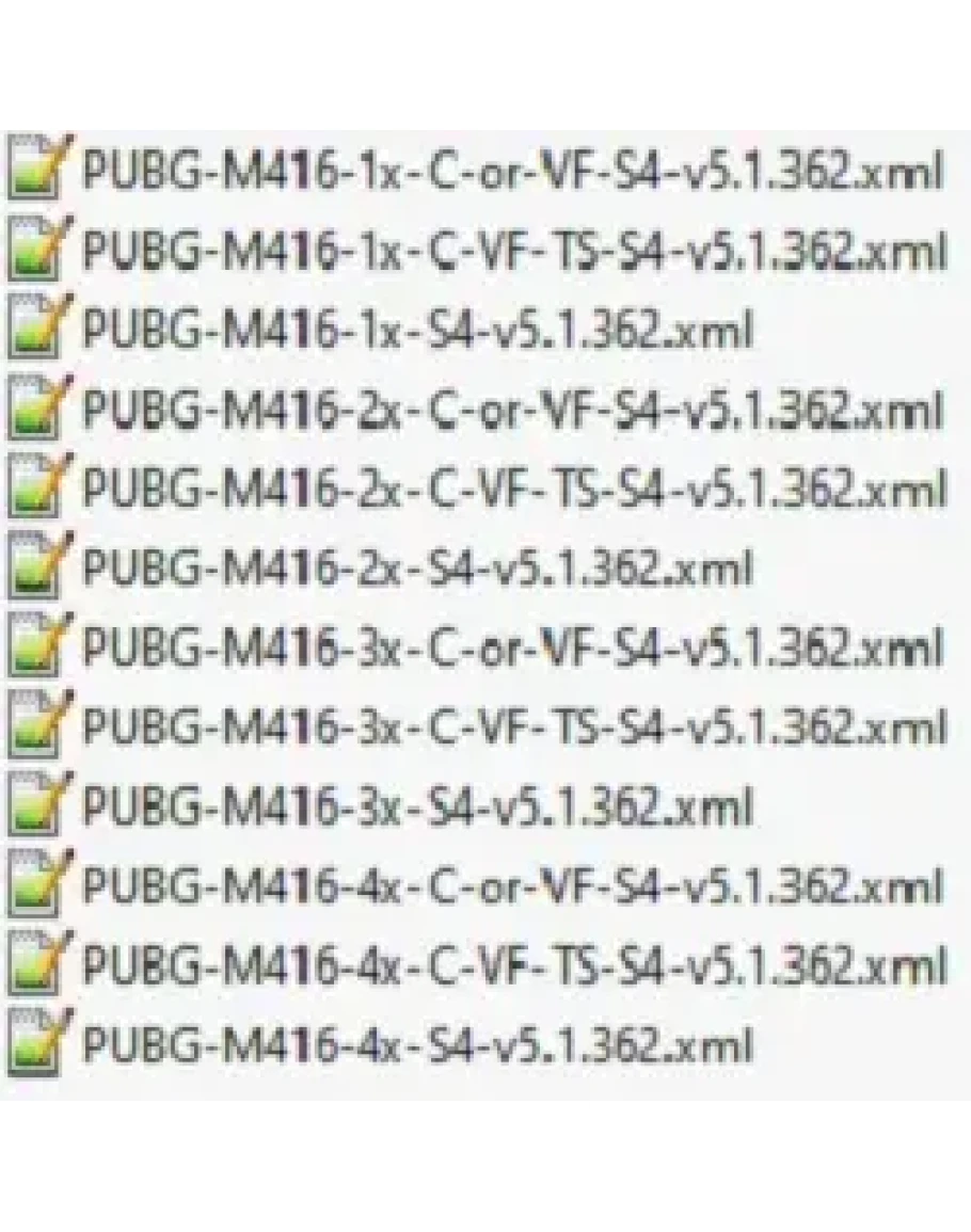 Макрос PUBG-M416-1x-C-VF-TS-S3-v5.1.362.xml используете на М416 уже с компенсатором, с вертикальной рукояткой и с тактическим прикладом.