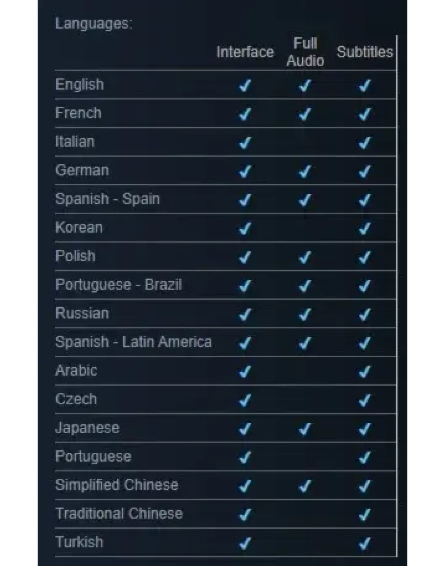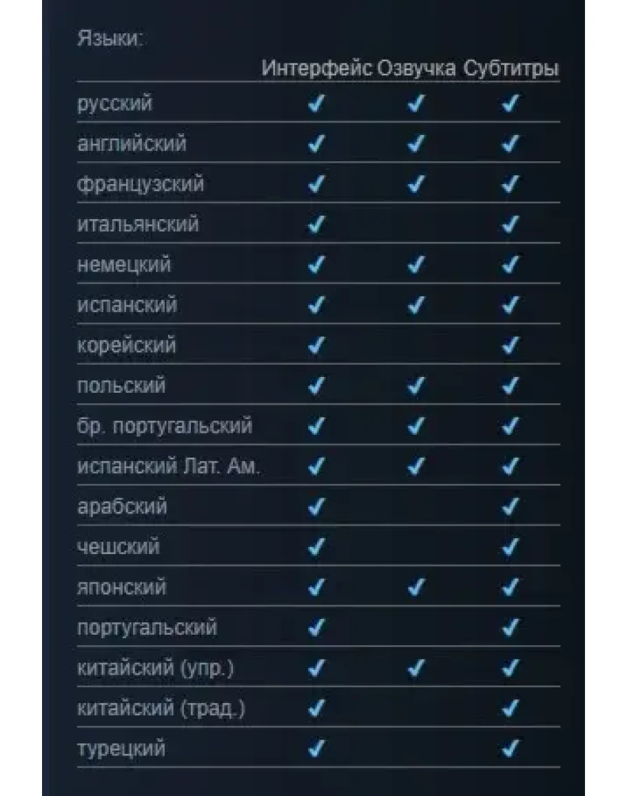 Язык озвучки: Русский, Английский, Французский, Немецкий, Испанский, Польский, Бр. Португальский, Испанский Лат. Ам, Японский, Китайский (упр.)