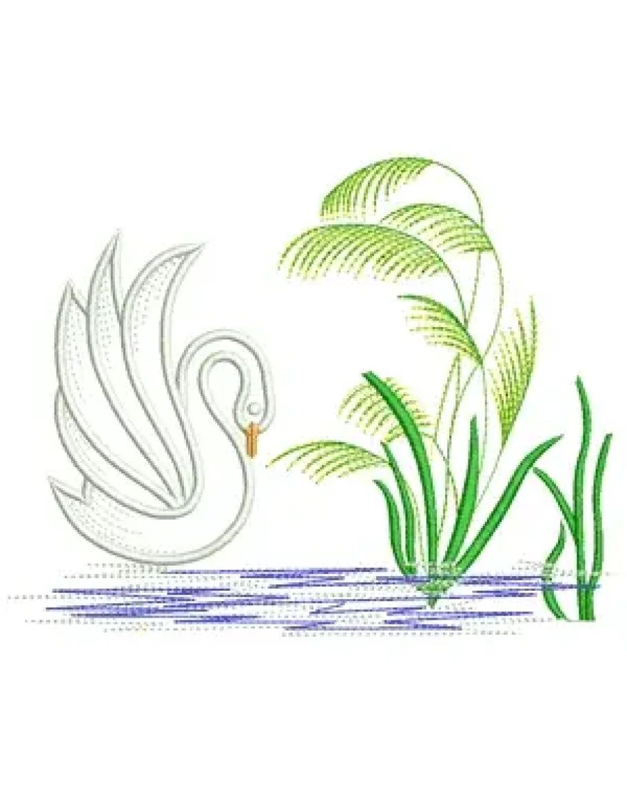 Машинная вышивка "Лебедь на пруду"