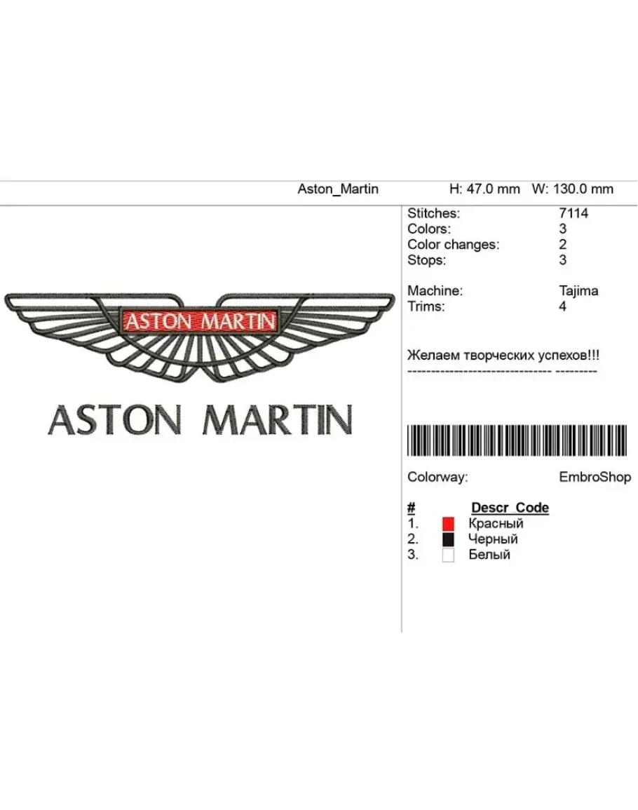 Машинная вышивка-логотип "Aston Martin"