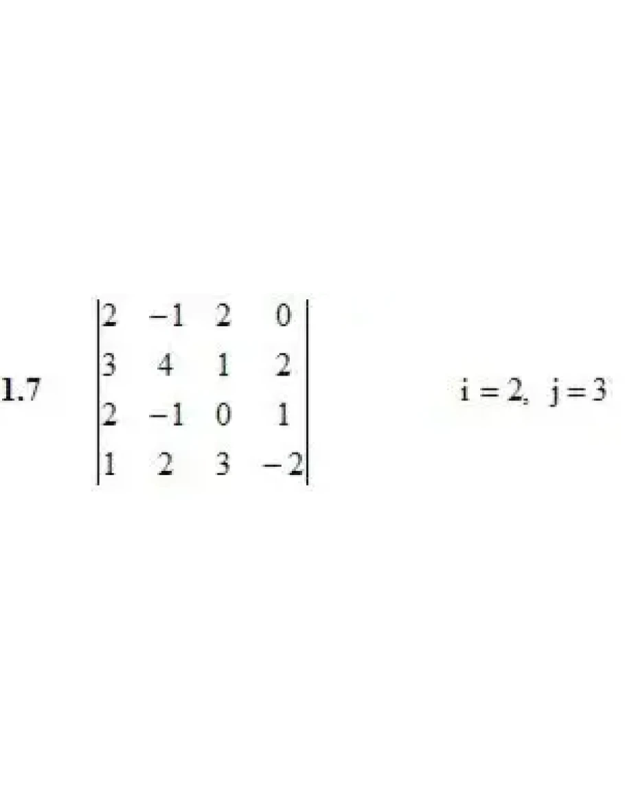 1. Для данного определителя Δ найти миноры и алгебраические дополнения элементов ai2, a3j. Вычислить определитель ?: а) разложив его по элементам i-й строки; б) разложив его по элементам j-го столбца; в) получив предварительно нули в i-й строке.