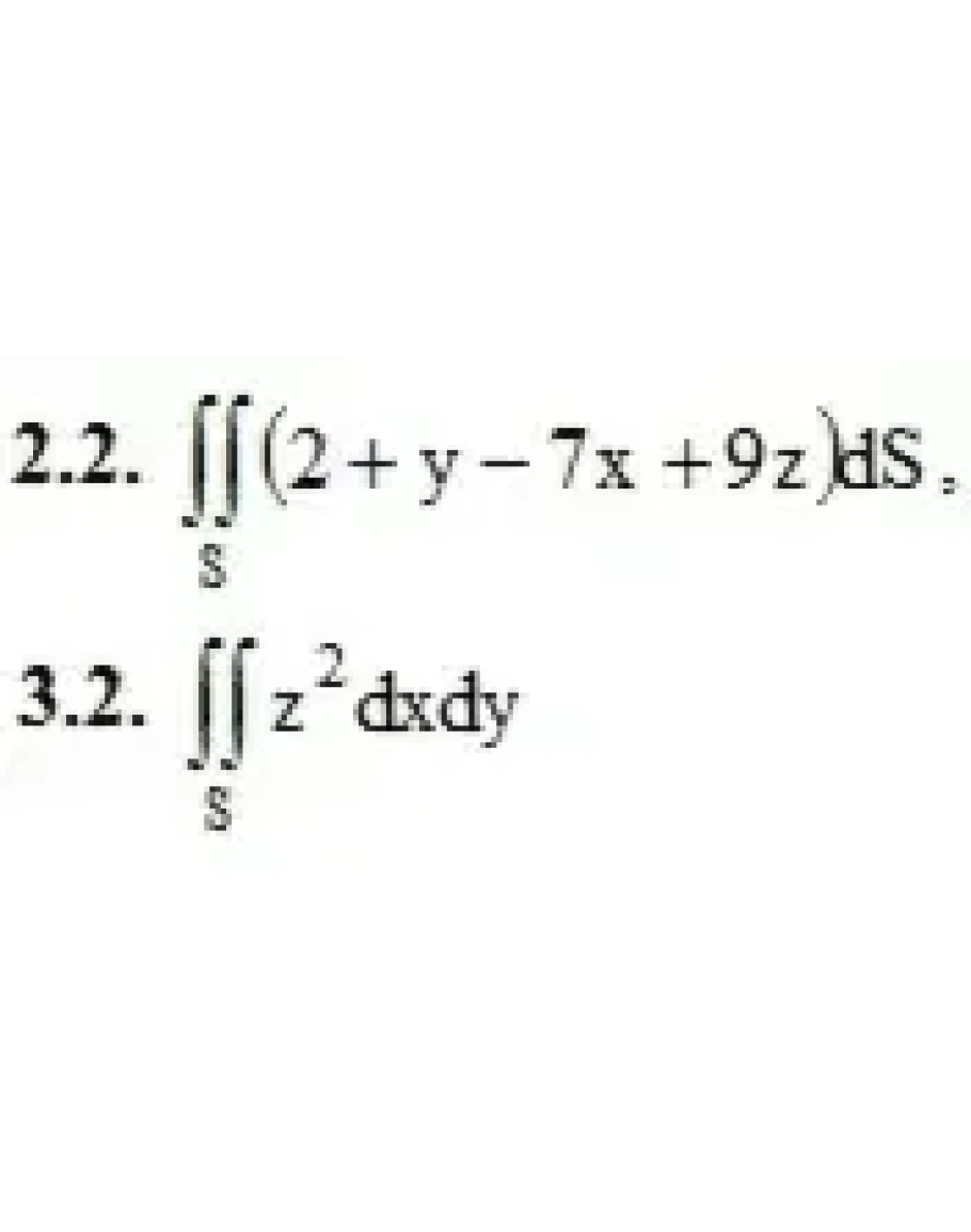 2. Вычислить поверхностный интеграл первого рода по поверхности S, где S – часть плоскости (p), отсеченная координатными плоскостями.